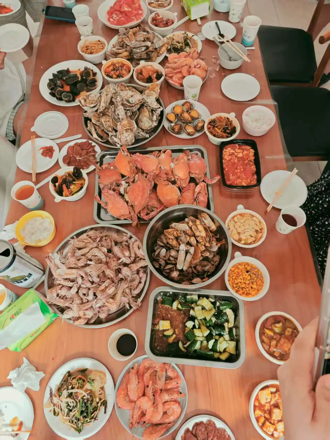 5.游玩:海鲜吃了,海边去了,拍照打卡了,人不少,天气很热。海边停车场堵车,但是看到不少执勤的女警官,成为飒爽的英姿成为一道靓丽的风景线。现在政府重视文旅,也是费心了,点赞。去海鲜市场买了螃蟹大虾生蚝等(见图),花了600多,感觉价格还可以。返程前吃了一顿海鲜酒楼,团购+单点,没点螃蟹皮皮虾,菜量大、味道还好,没吃了,人均不到100。住的民宿别墅,5室,每间每天400多。
