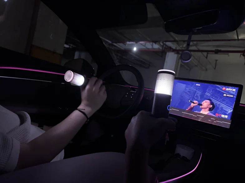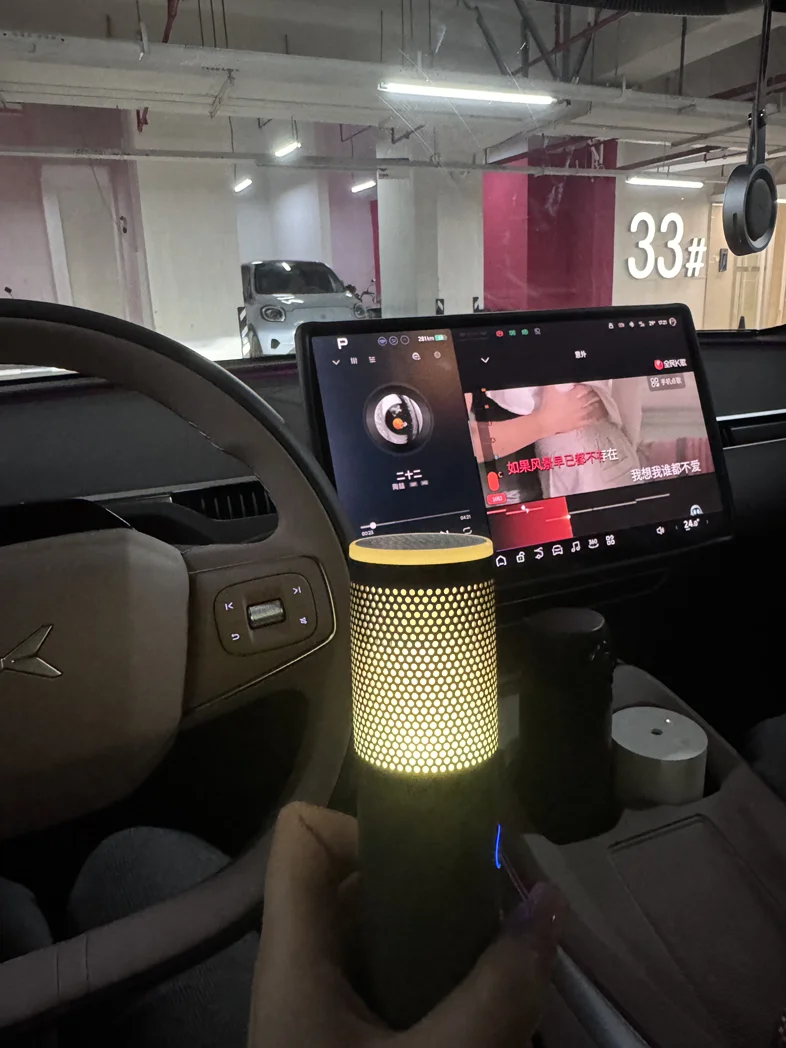 下了班在车上休息 刚好收到麦克风快递,突发奇想来上那么几首歌,麦克风连接很快,插上接口打开麦克风 点开全民k歌基本秒连,简直不要太丝滑了,是谁还没在车上唱周杰伦,真的太有氛围感了嘿嘿🥳#小鹏车载光年麦克风嗨歌神器#