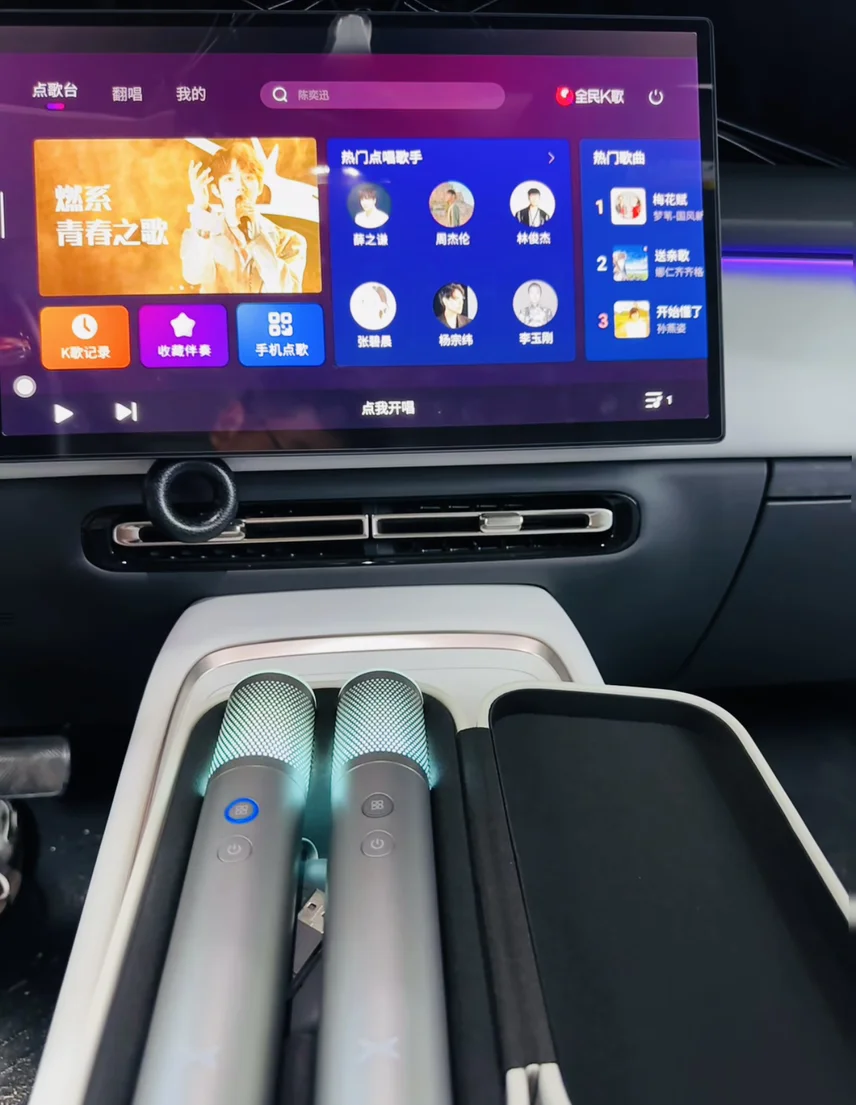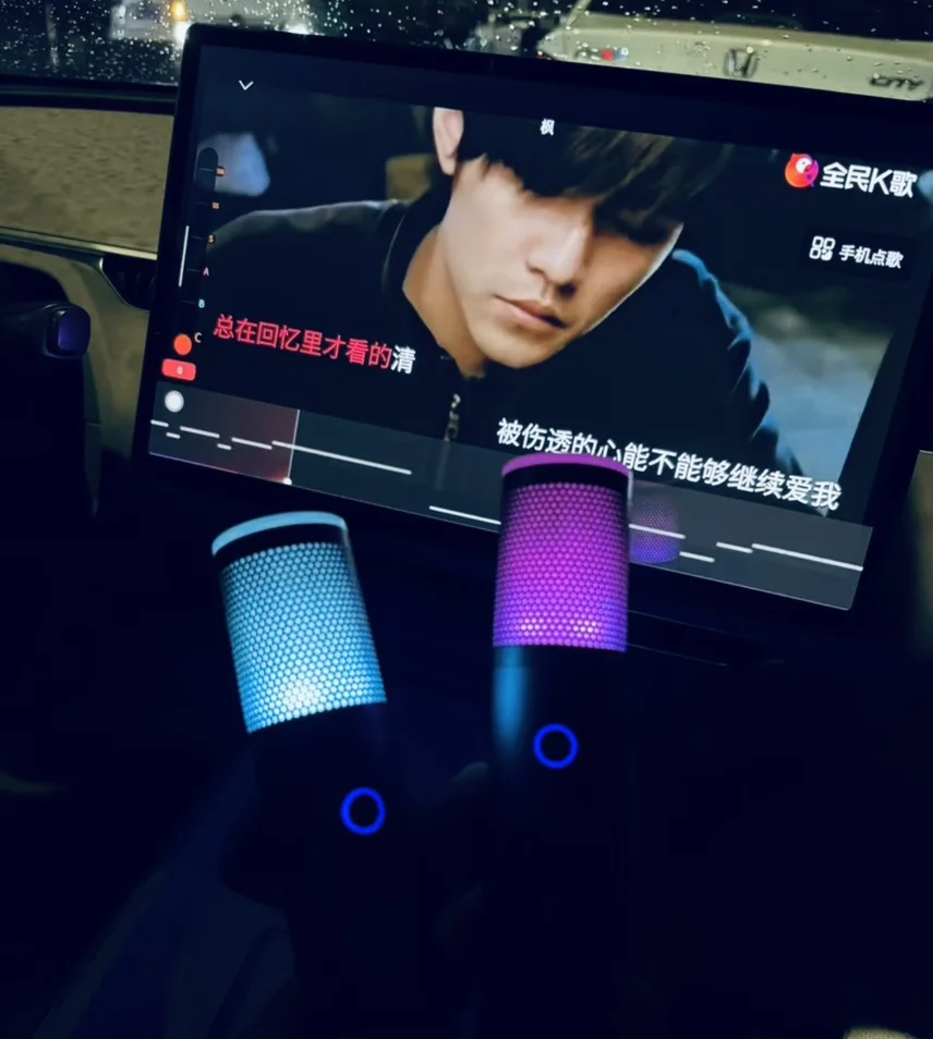 务必调到“演唱会模式”,你会得到车顶照明灯随律动闪烁,金属麦身映出摇晃的影子,