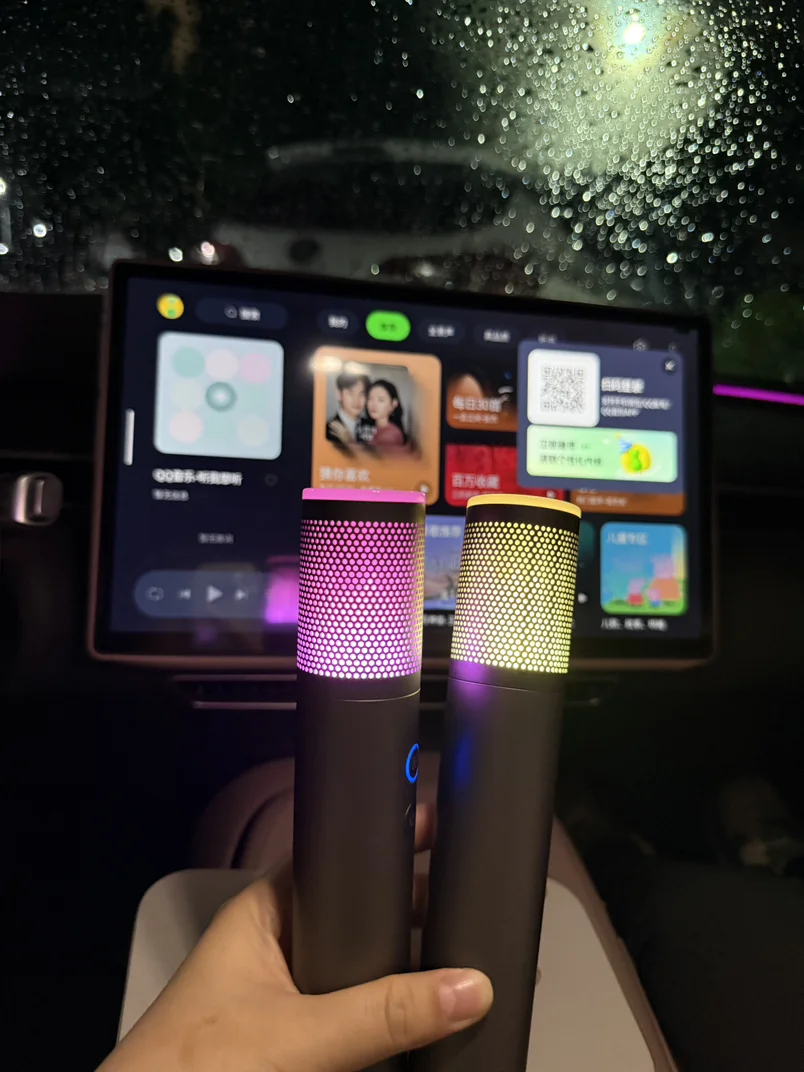 有谁和我一样么,提车第一件事情就是买麦克风🎤!颜值实在是太高了,夜晚唱K氛围感拉满!音效也还不错,怒唱了至少20首歌!还让我弟在车外听了下,不是贴着车窗,音量最大车外也不会很大声,不会扰民。有了这个麦克风,以后谁还去ktv呀,咱都有自己的移动ktv啦!而且还没人切我歌😜😜#小鹏车载光年麦克风嗨歌神器#