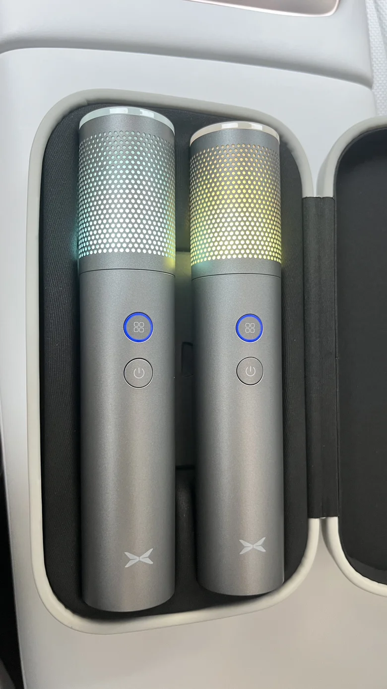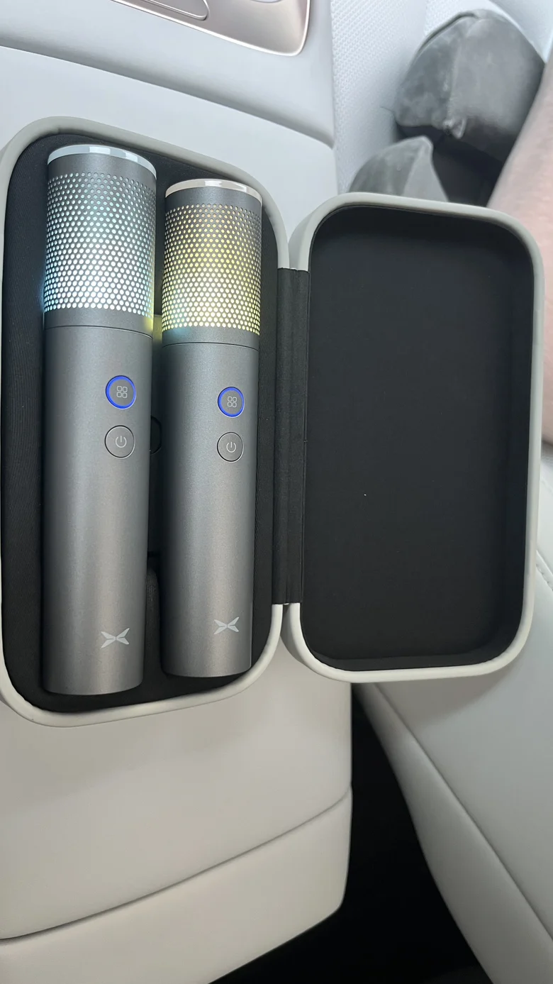 #小鹏车载光年麦克风嗨歌神器# 这款麦克风外观设计简约大方,银灰色机身搭配精致的品牌标志,尽显高级质感。顶部的网状设计既保证了收音效果,又增添了独特的视觉元素,点亮的灯光更是赋予其科技氛围感。按键布局合理,操作便捷 。从放置方式看,专属收纳位方便取用和存放,整体兼顾了美观与实用性。