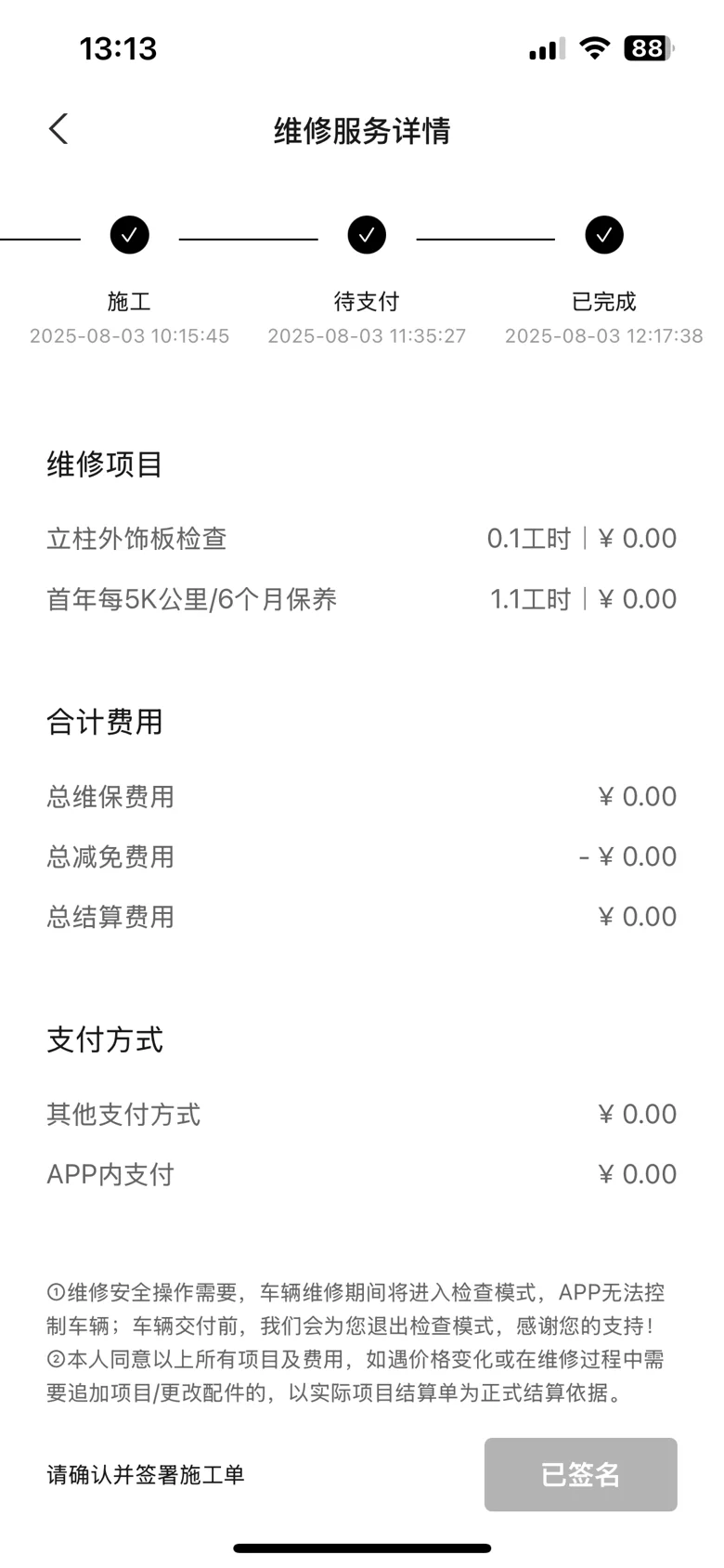 从预约到维保结束都很贴心,预约完成后专门有人打电话确认,到店后接待热情,中午留特意留客饭,炎热的夏天还有冰凉的水解暑,很贴心。小姐姐接待特别热情贴心,一切都给耐心讲解~超级奈斯~