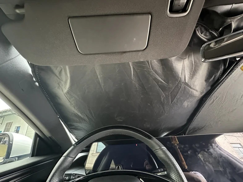 #鹏友们的夏季用车秘籍# 夏天车子被高温暴晒,小鹏车主用车防晒有妙招!停车时使用前挡遮阳挡+天幕遮阳帘,能有效降低车内温度10℃+,保护中控屏幕和延缓内饰老化。推荐选择银色反光材质,防晒效果更佳,折叠式设计方便收纳在车门侧格,减少空间占用。@鹏友俱乐部