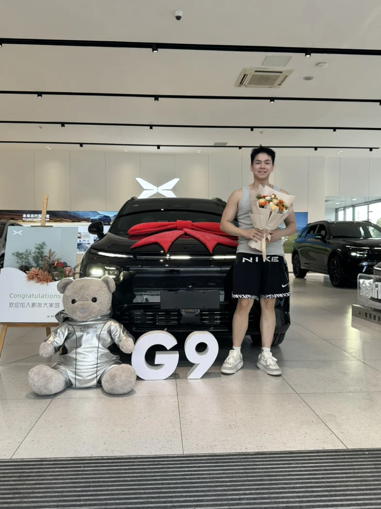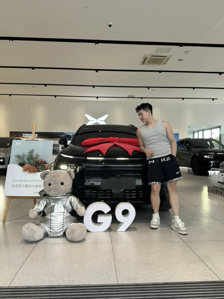 小鹏g9提车啦,天气很热,但是看车试驾的人依然很多。人生第一次提车,非常的喜欢,直接黑武士套装咯。