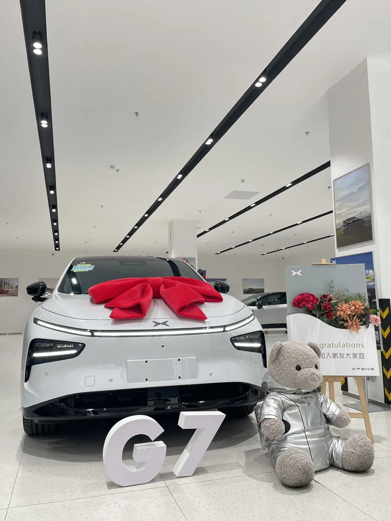 喜提小鹏G7白外蓝内!星云白车身简约大气,秘境蓝内饰治愈高级,NAPPA真皮+氛围灯质感拉满。提车流程高效,交付仪式超有仪式感。驾驶体验惊艳:XNGP智驾自动跟车、AR导航超省心,CDC悬架滤震一流。702km续航+800V超充实力在线,性价比爆棚!💙🚗 #小鹏汽车、# #超级AI汽车小鹏G7来了#