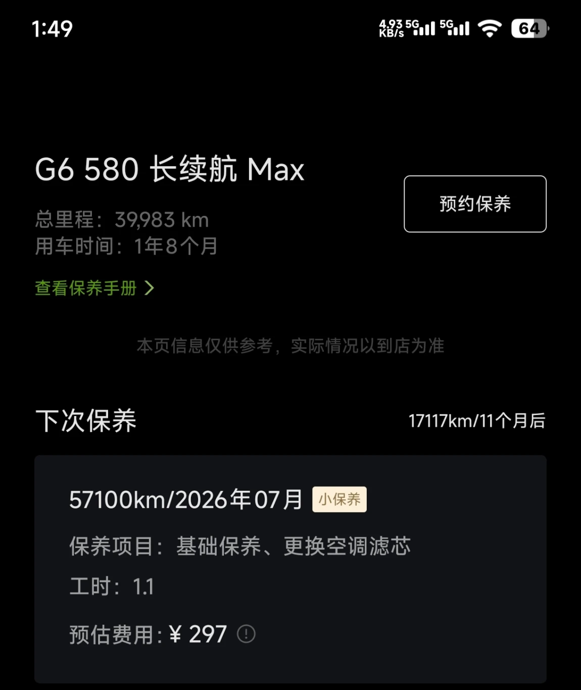 相比之下,我之前的油车每 5000 公里保养一次,小保养费用约 500 元,20000 公里时大保养费用更是高达 2000 元左右。40000 公里下来,油车保养费用至少要 10000 元,是我小鹏鸡柳的16倍。