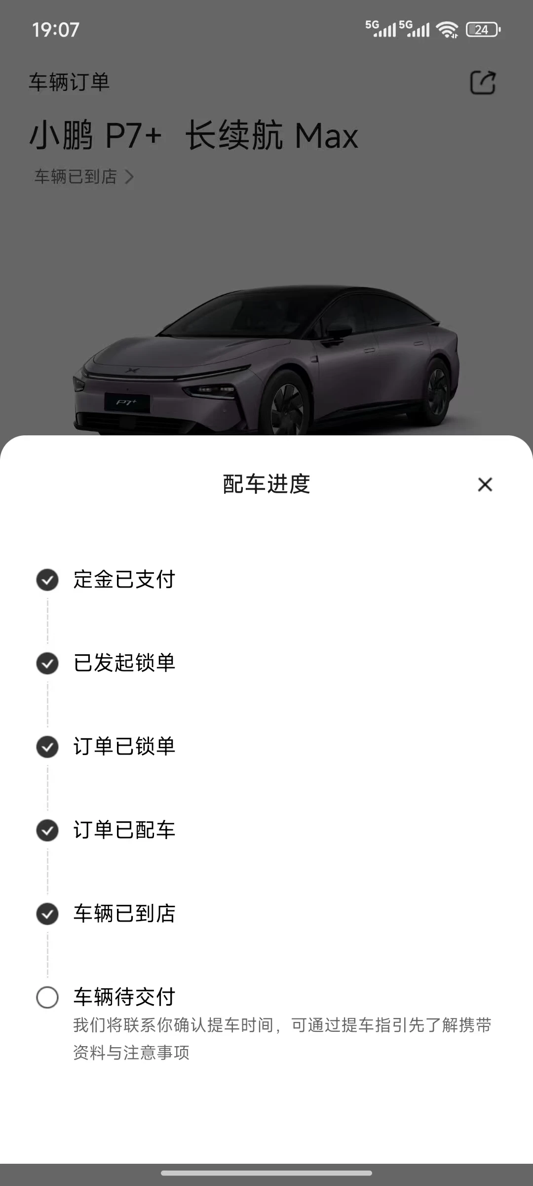 接下来就是看车,等了新款G6,看过C10,C11,兜兜转转,等到了P7+官降,立马下单。