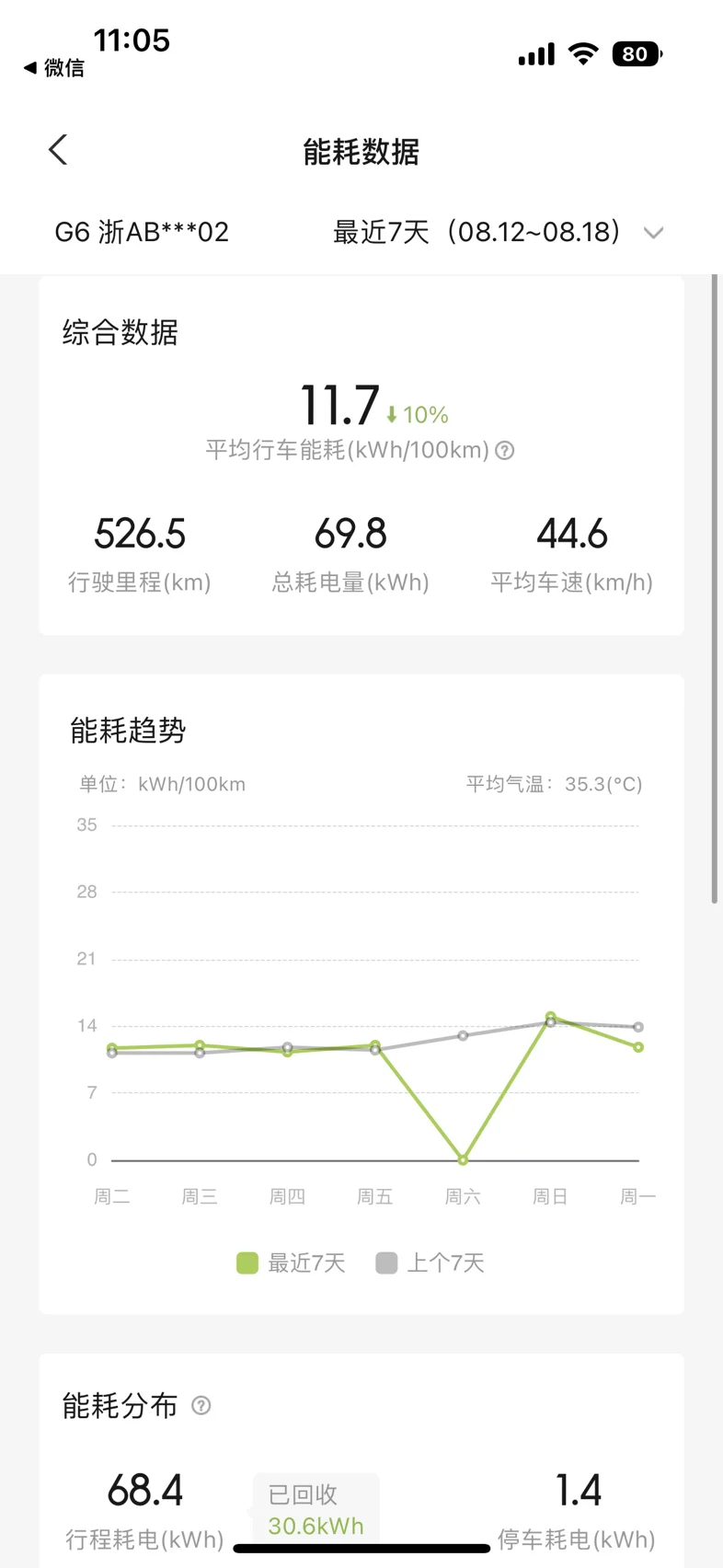 #我的低碳车生活# @鹏友爱公益 @鹏友俱乐部 夏天到了,在40度的杭州,开着空调还能达到这个电耗,真的小鹏太牛了!当然也离不开我的黄金右脚,保持平稳驾驶,避免急加速和急刹车,这样能减少能耗。合理使用动能回收系统,在减速时回收能量。节能环保,续航无敌。