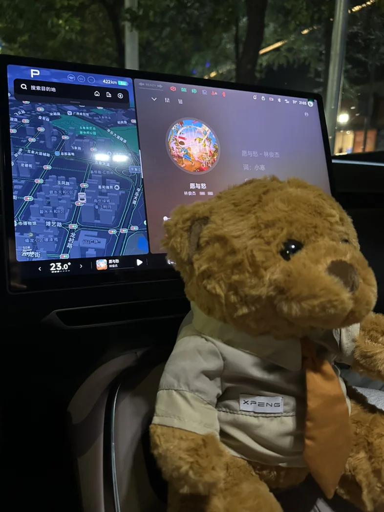 旧车评估师报出价格时,我攥着骐达的两把钥匙忍住住欢呼,交付小姐姐带着小熊盲盒开到我的面前,一只打着领带的总裁小熊坐上了我的副驾。降下车窗让初夏的风灌进衣袖,此刻的风都带着甜甜的味道。深夜驶进高速上NGP稳稳咬着前车节奏穿梭在车流中,曾经开骐达时紧绷的肩膀第一次彻底松弛。拐进巷口触发极限泊车时,忽然想起去年开骐达蹭墙后蹲在雨里看刮痕的深夜——此刻后视镜里墙角的斑驳还在,但车厢里弥漫的紫光像温柔拥抱裹住所有忐忑。
