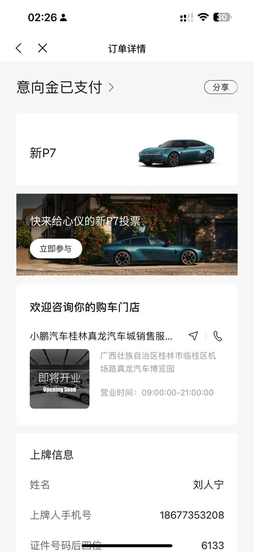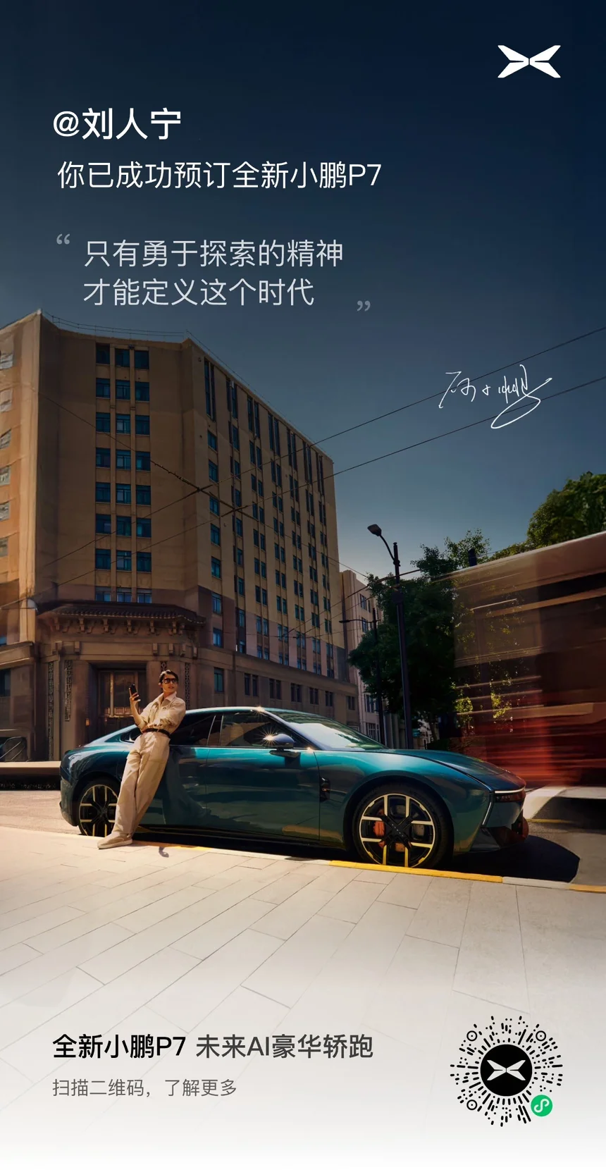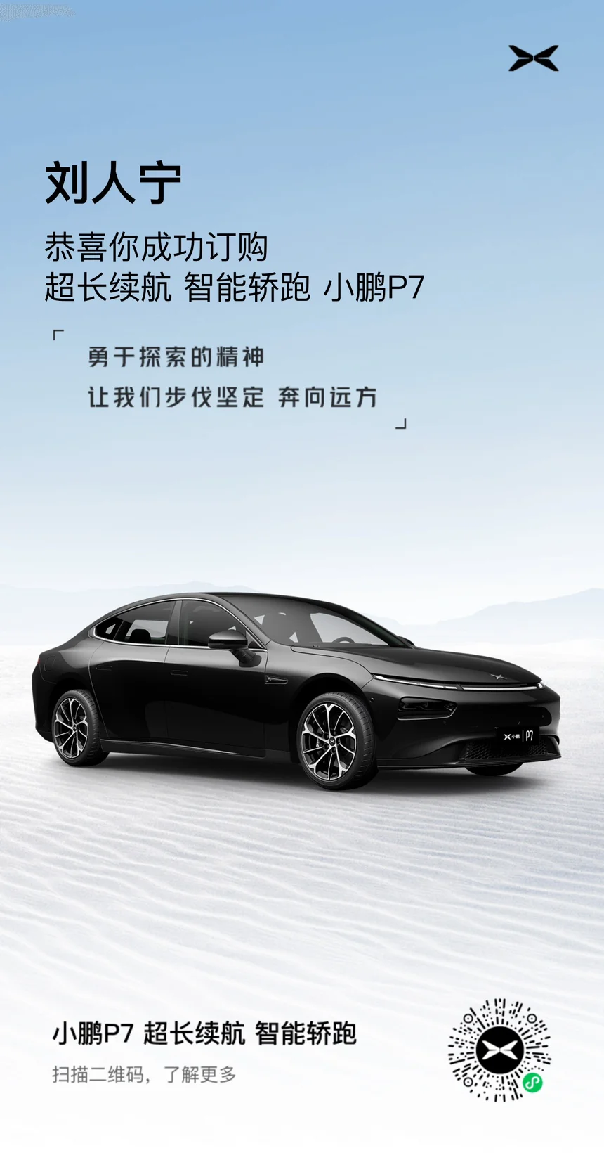 #小鹏汽车#、#全新小鹏P7开启预售#因为喜欢所以热爱,从刚接触小鹏P7开始,当第一次韭菜,当遇到小鹏智驾跟颜值,对,是心动的感觉,2022年参加1024对小鹏汽车有了新的认识,果断2024年又换了新G9,两台车一共行驶14万公里,驾我都开了8万公里,现在跑高速都离不开小鹏智驾,男人总是有一个跑车梦,当看到新P7的图片的时候,我还跟销售说这车没有第一代P7好看,当看到实车,又是另一种感受,给我的第一印象是美式肌肉大男孩,复古,简单,帅,5C800多续航跟跑进3秒俱乐部让我瞬间上头,这就是我下定的理由