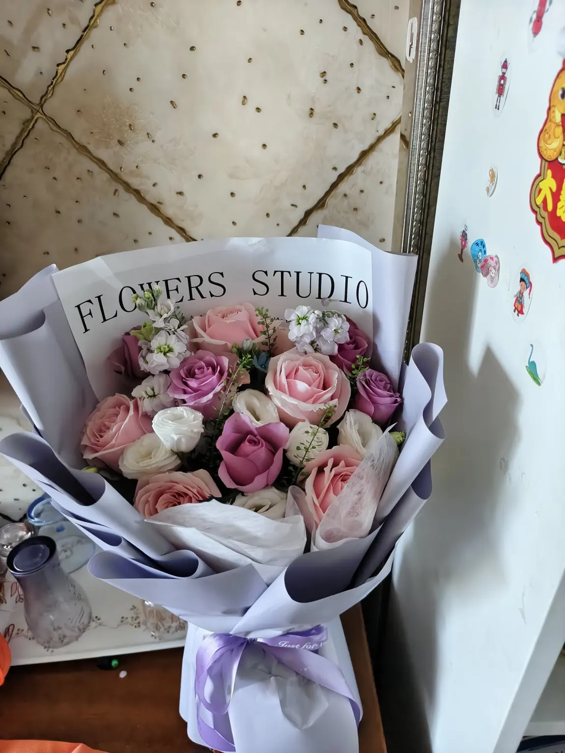 销售送了鲜花,奈何没刮胡子就也没合影,交付礼,一个玩偶熊🐻