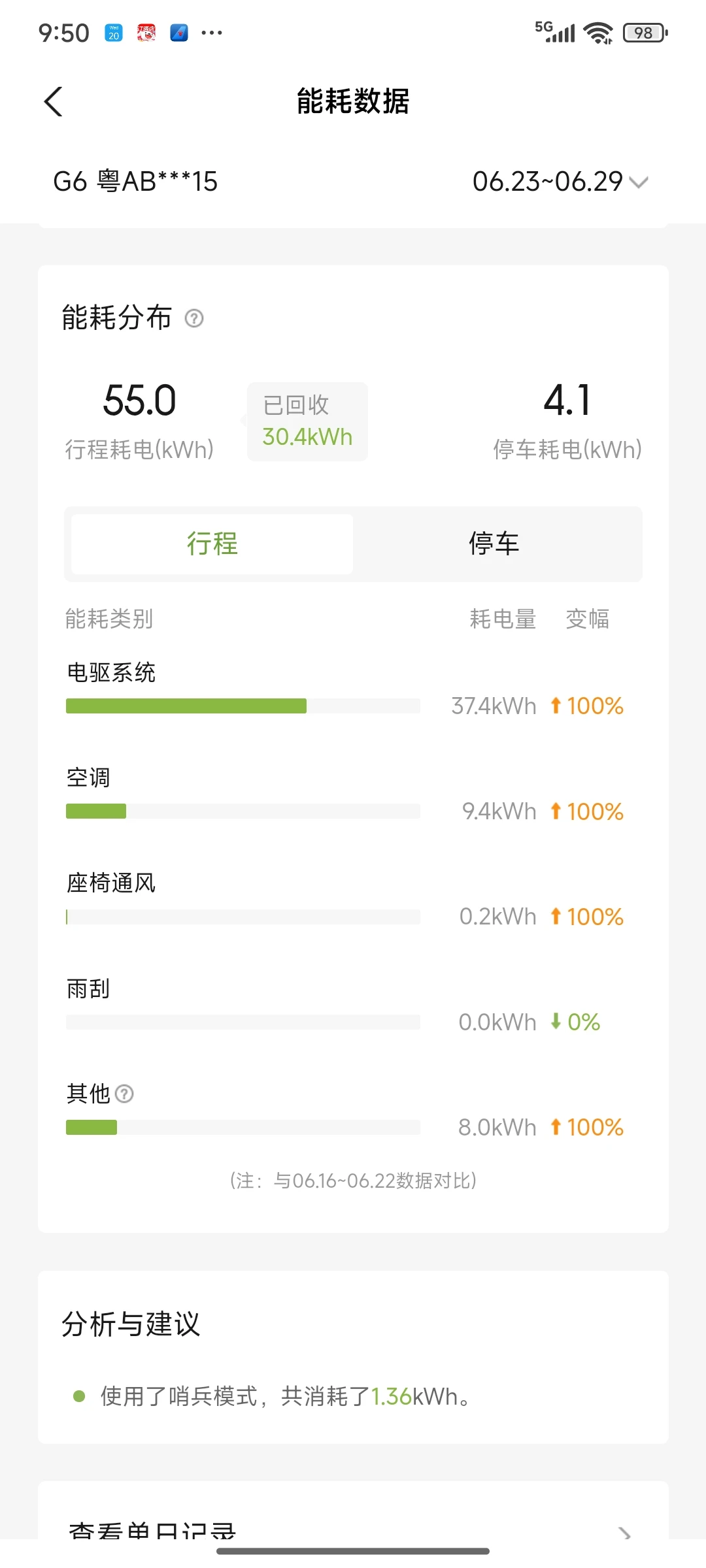 选择电动汽车本来就是为了更加环保,选择小鹏更是看中了强大的三电管理能力、快速充电、智能降温等等符合低碳用车的各种功能,比如,在日常城市驾驶环境,完全可以通过动能回收减少刹车损耗,建议可将能量回收模式调节至较高登级(如下图),行程耗电55,但已回收30.4,回收率近30%,既享受了纯电驾驶的乐趣,又为环保作贡献,岂不乐在其中?