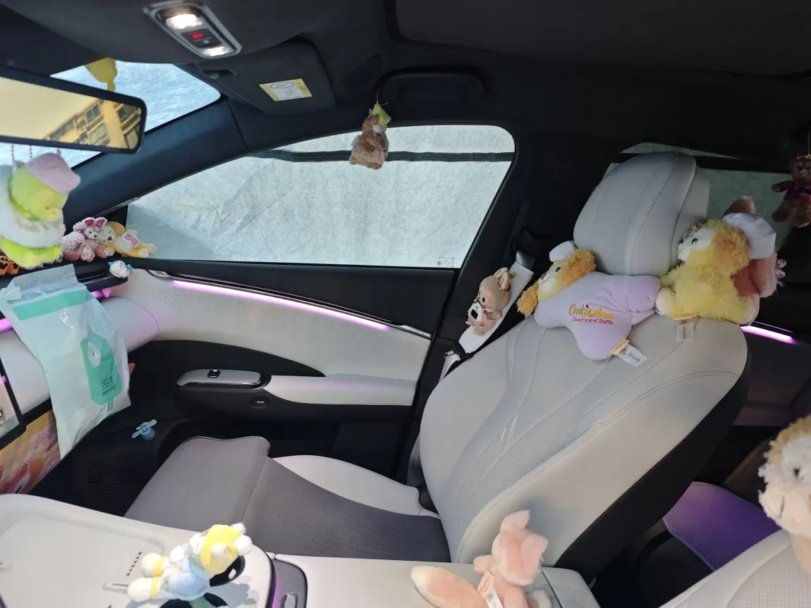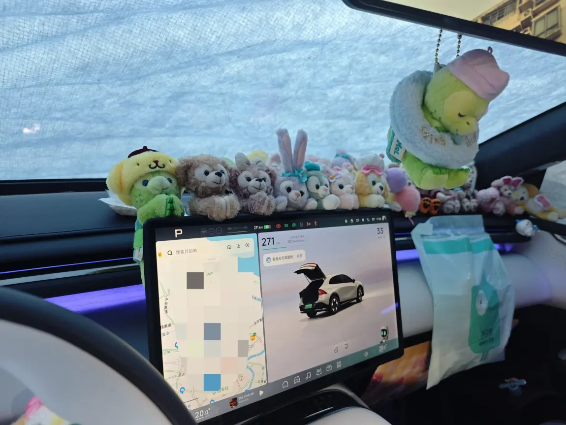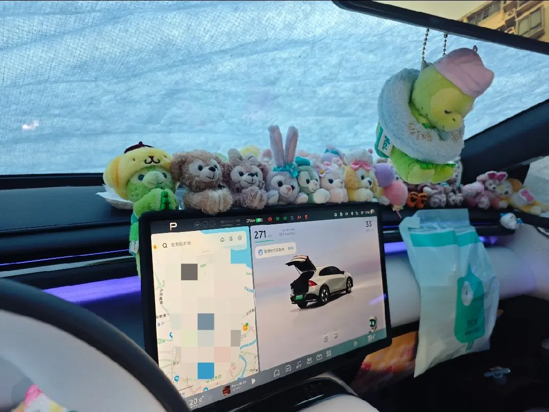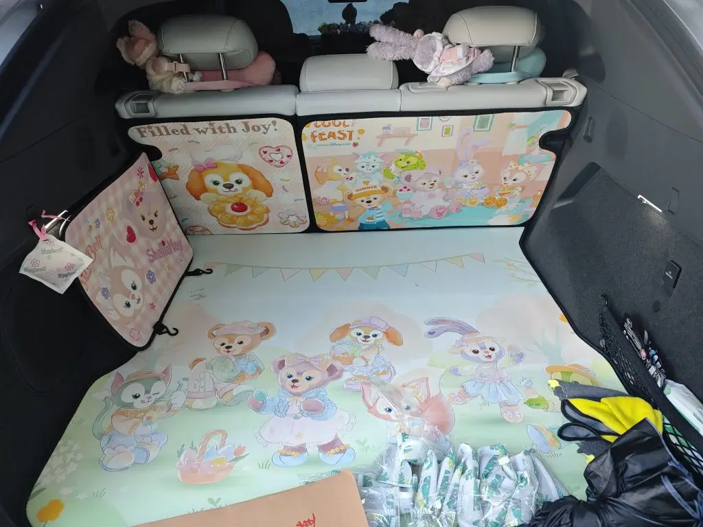 首先中控屏幕玻璃膜要贴的,然后迪士尼7宝安排上。每个座位的靠枕也都安排上,后备箱定制的后备箱垫,每次打开后备箱看到漂亮的图片都很开心。