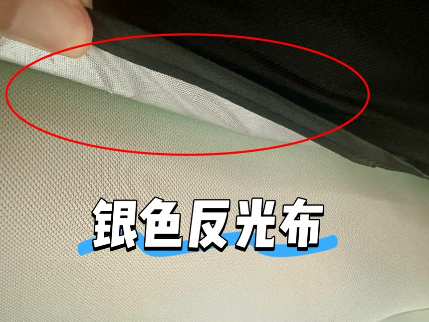 要选这种带银色反光布的双层天窗帘,因为这个银色有太阳直射的反光作用,加上这种双层的天窗帘,相当于给车加了一个顶,降温效果也是非常明显。