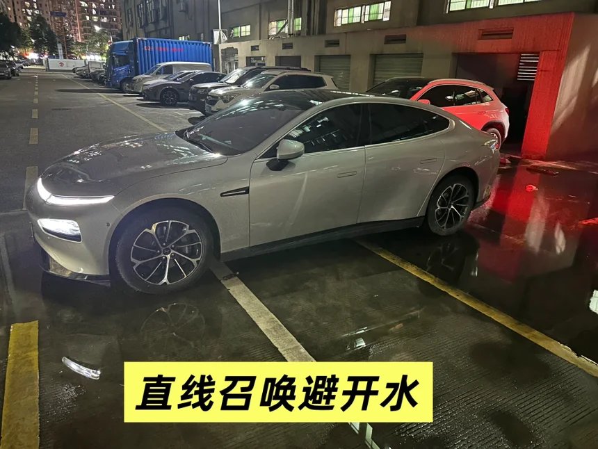 深圳的暴雨很多,特别像今年台风天气多,雨水也多,所以,用车经常车停在车位上的水很多,P7的直线召唤功能就太好使了。