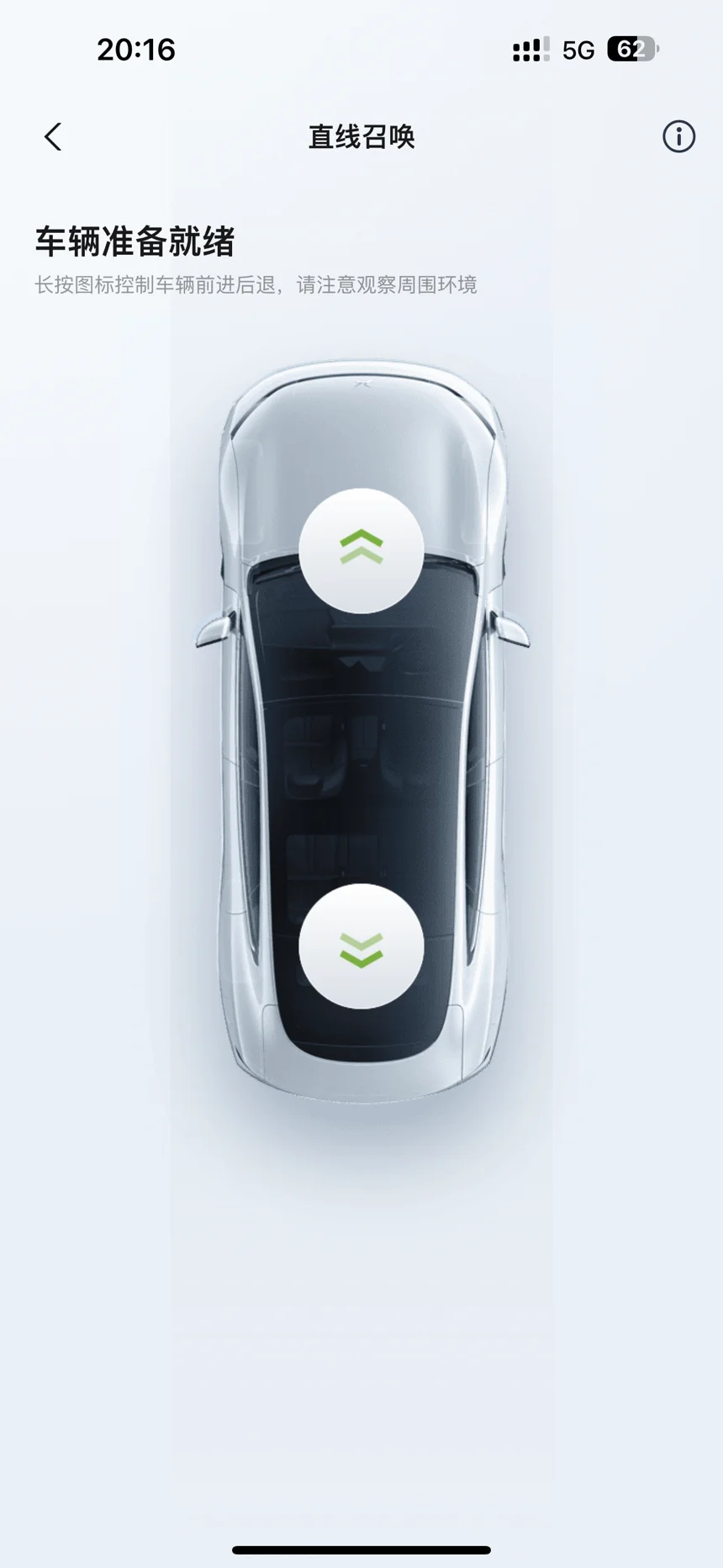 在app用车界面处找到直线召唤功能,长按前进键,车子就稳稳地从积水里开了出来,成功避开了鞋子湿水的烦恼,真的特别实用。