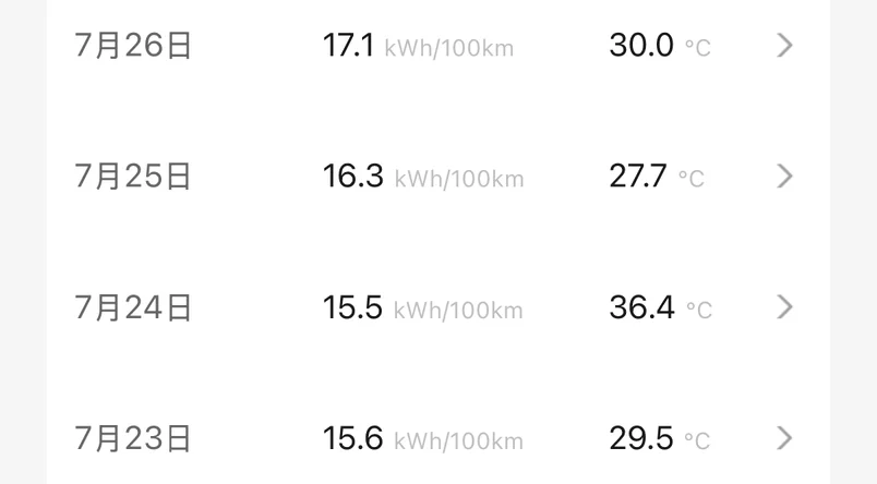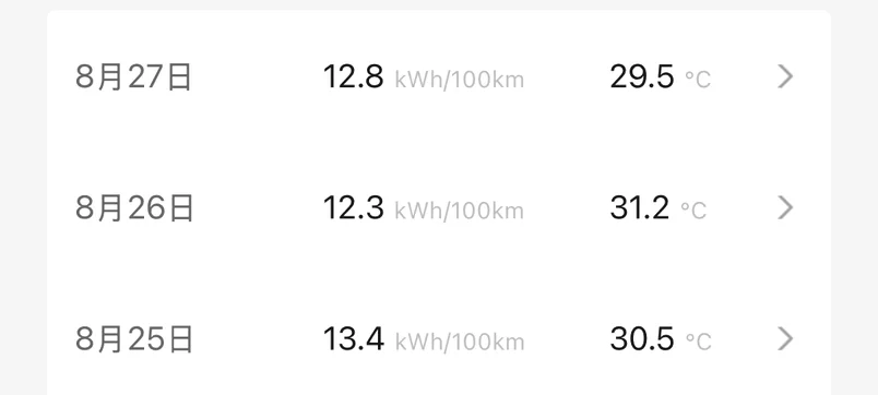 我发现这一点和油车是类似的,我上下班只有三四公里的通勤距离,每次平均电耗都去到15-17甚至以上,最近接送老婆上下班,通勤距离变成十多公里,每次平均电耗都能控制在12-13,驾驶习惯是不变的,但平均电耗出入很大。