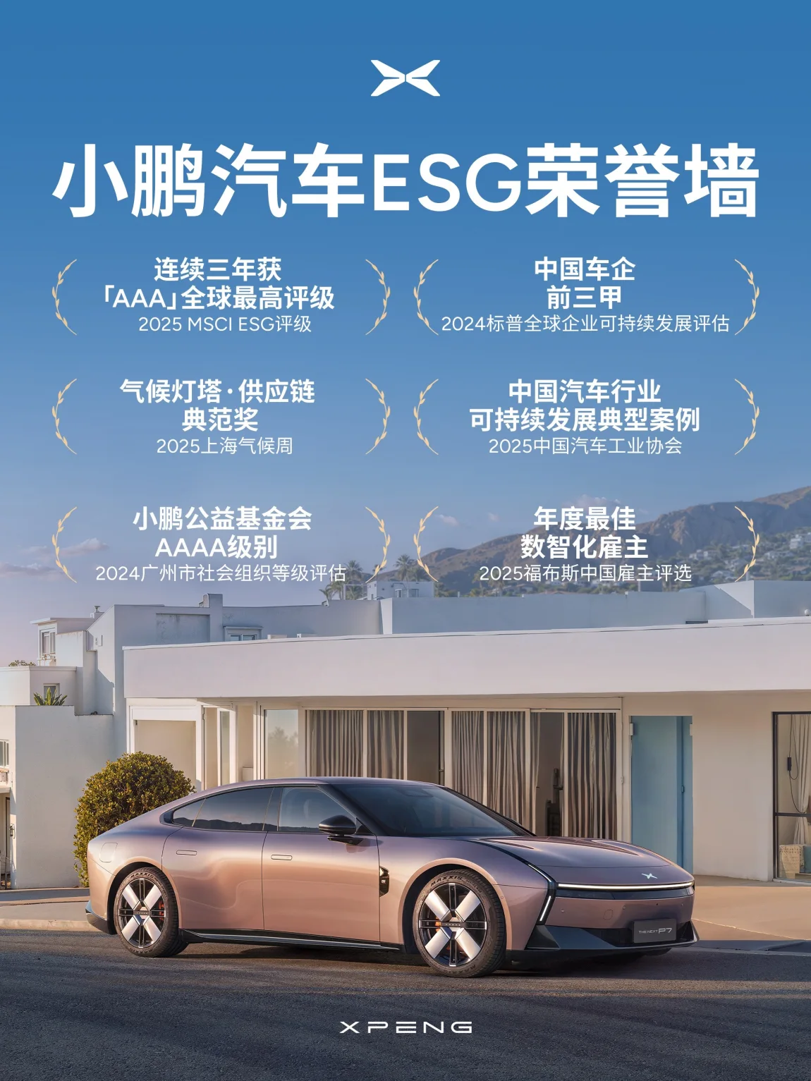 该评级充分肯定了小鹏在ESG治理与可持续发展领域的卓越表现,标志着小鹏汽车在国际层面获得权威认可,不仅体现了企业在可持续实践中的领先地位,更展现了中国品牌在全球汽车产业绿色转型中的推动作用。