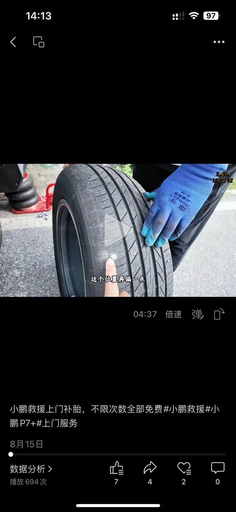 🔧因为我要记录拍摄视频,所以影响了师傅的手速,如果我不碍事,27分钟就搞定了。胶条加内补双保险,同时还给我做了动平衡,以及给我检查了整车胎压。您还别说,#小鹏救援 车里塞了不少东西,你认识多少个。