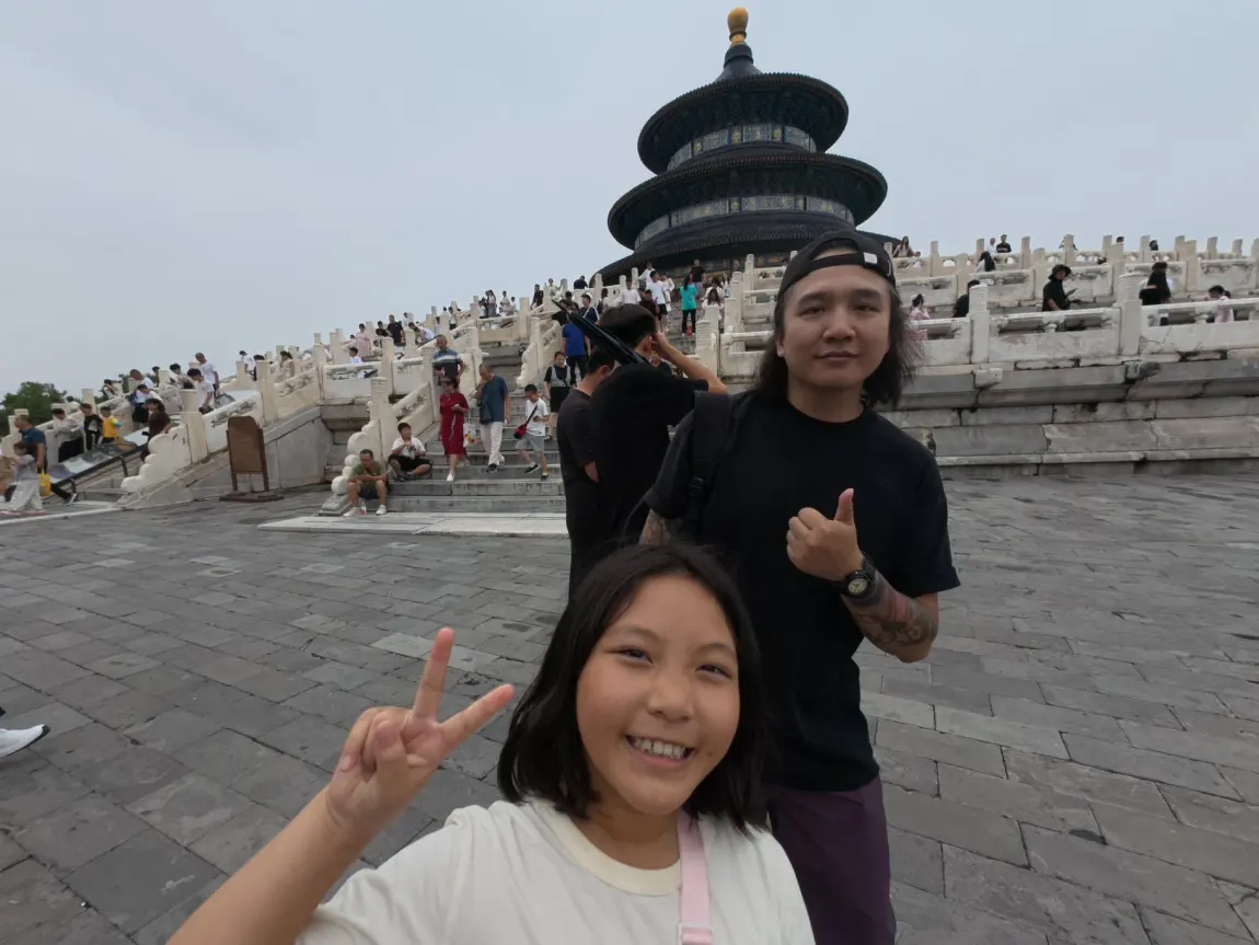 在北京,我们去了天坛,古老的建筑与蓝天白云相映,女儿跑在长廊下,像在和几百年前的时光赛跑;