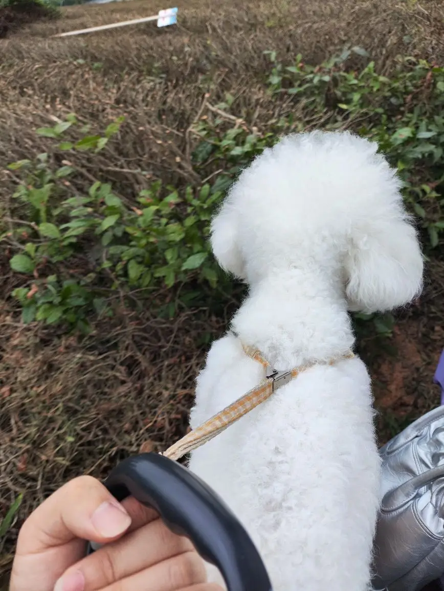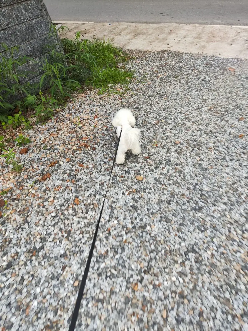 迫不及待的从停车场出来啦!被小狗拽着走。