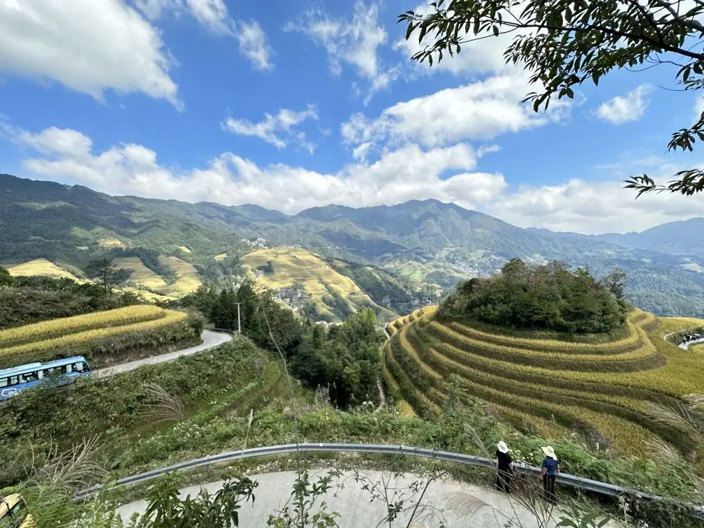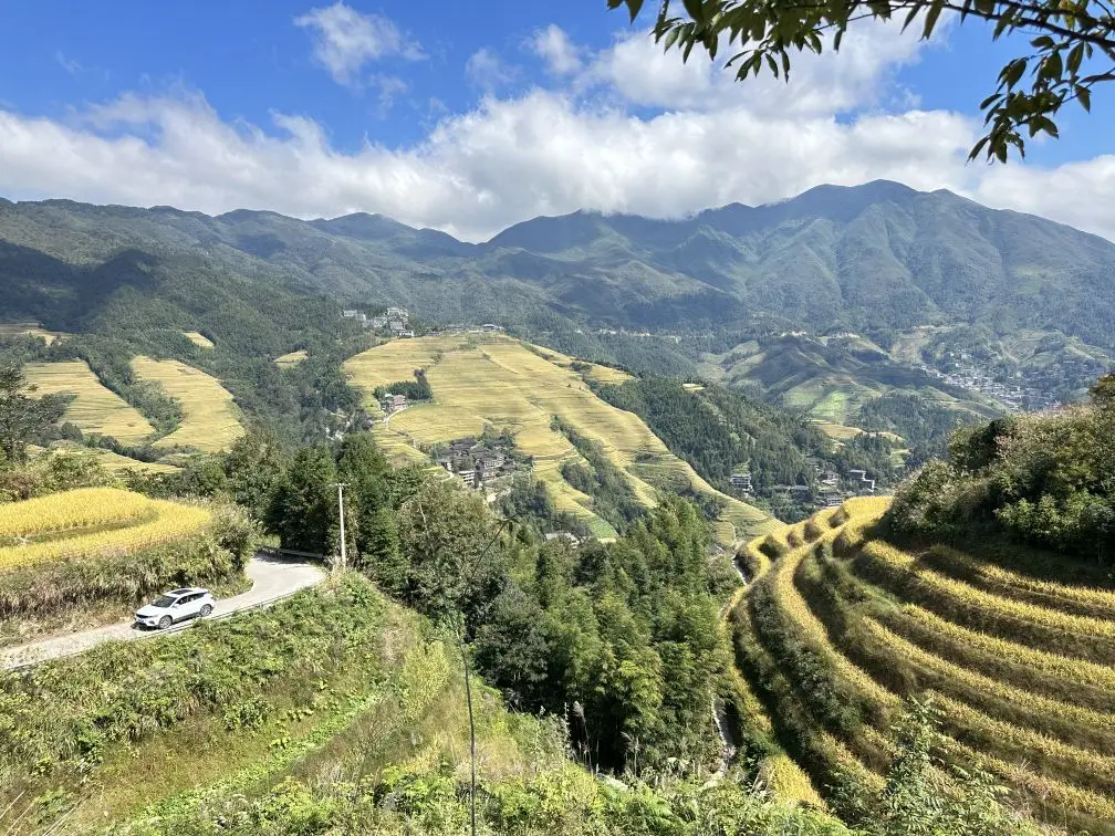 山脚有慢充然后上山,山上10月比较冷带够衣服手套这些,下午下山后出发回程广东方向途径桂林龙脊梯田,记得提前问景区割禾没有,10月真的金灿灿一片很好看