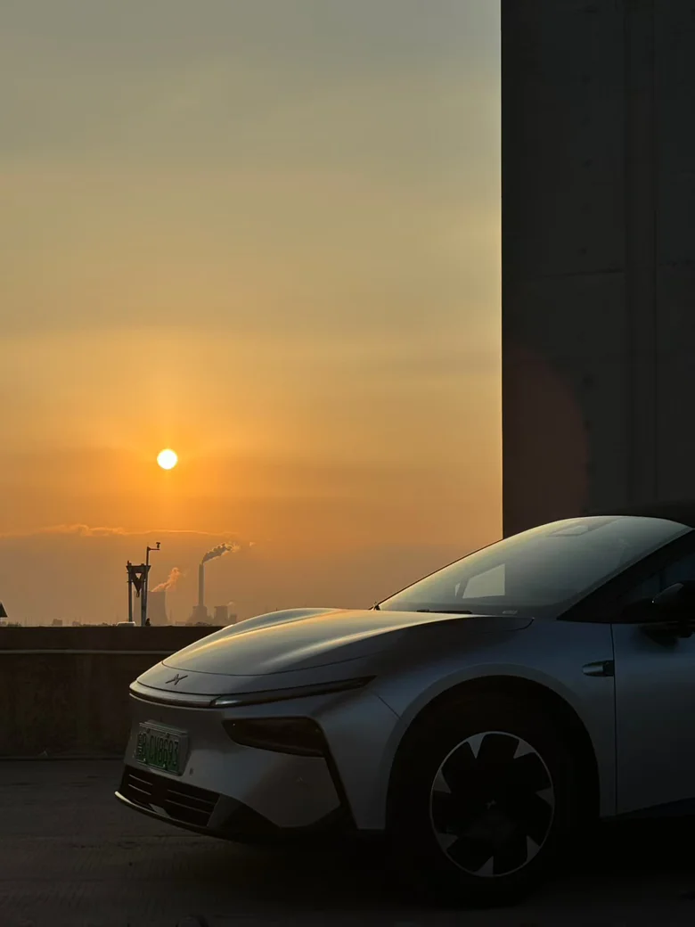 4️⃣ 滨江景观带——落日余晖洒在车身上,光影交错中捕捉P7+的优雅曲线。