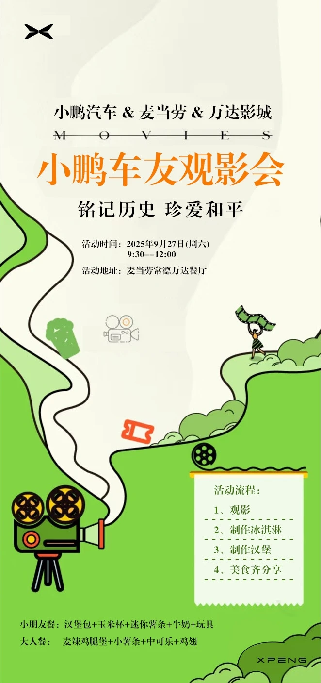 在国庆来临之际,小鹏汽车常德湘西北店举办线下鹏友聚会活动,《731》观影暨亲子汉堡DIY活动,当历史的回响与亲子的欢笑相遇,便碰撞出一场兼具深刻意义与温暖记忆的特别旅程。