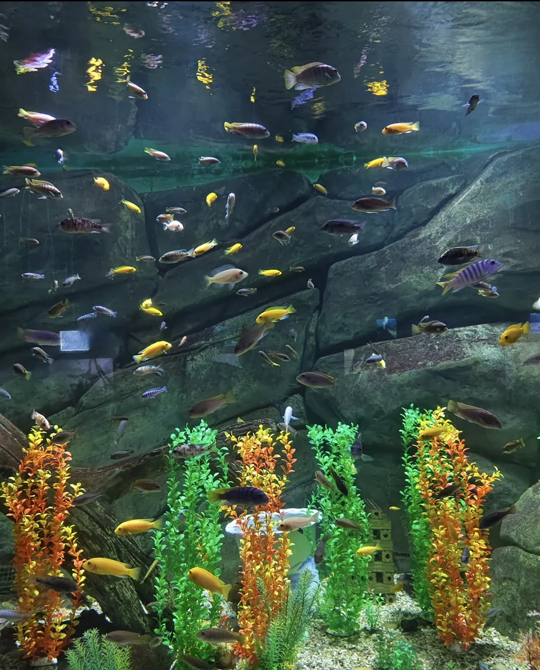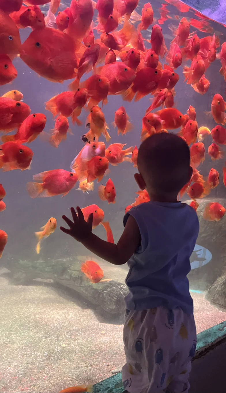 海底隧道是“必打卡”,环形玻璃顶360°罩着魟鱼与柠檬鲨,娃躺在推车里伸手抓“会飞的毯子”;中午在馆内简餐,儿童餐配小鱼形状米饭,他边吃边学海豚“啾啾”叫。