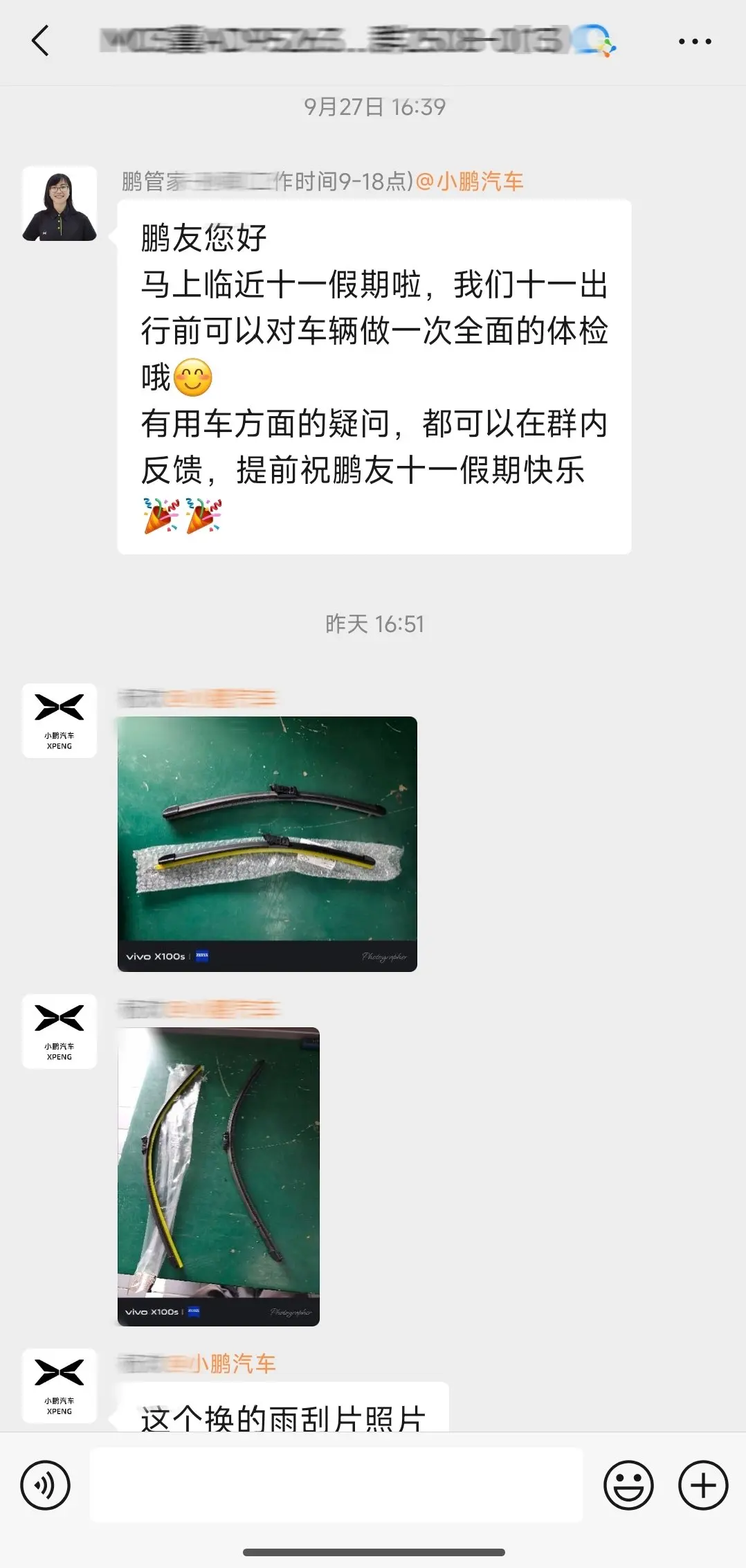 #满电黄金周,山河任我游# 国庆长途怕抛锚?小鹏护你一路稳如泰山!👉 到店享「全面体检」:电池、胎压、刹车系统,统统免费Check!贴心鹏管家及时提醒,在群内清晰报备检查结果,像我这个就是雨刷器老化了,换了个雨刷器,还会贴心把底盘,胎压等全部细心检查一遍,⚡ 充电不用慌,小鹏承包你的“电量自由”!【66度电免服务费特权】覆盖全国300+高速超充🆘 24小时「道路救援」全保障 爆胎?没电?突发状况一键呼叫——🔋 高速超多小鹏站点 让您无需电量焦虑 想你所想@鹏友俱乐部 @充电小助手 @充电小助手 @充电小助手