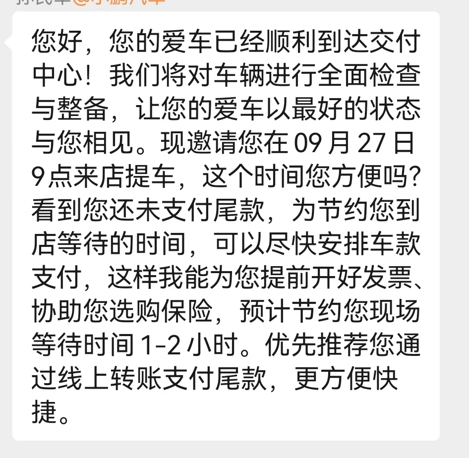 小鹏的服务也是真不错,环境也很好,无论是订车还是提车都有很多人招待我,还给我拿了很多水,环境也很好,卫生间也很干净,提车去打临牌。