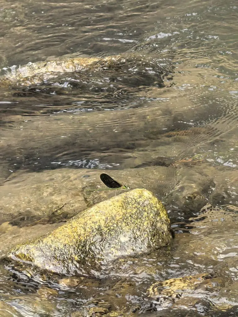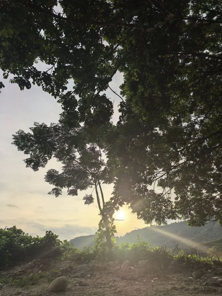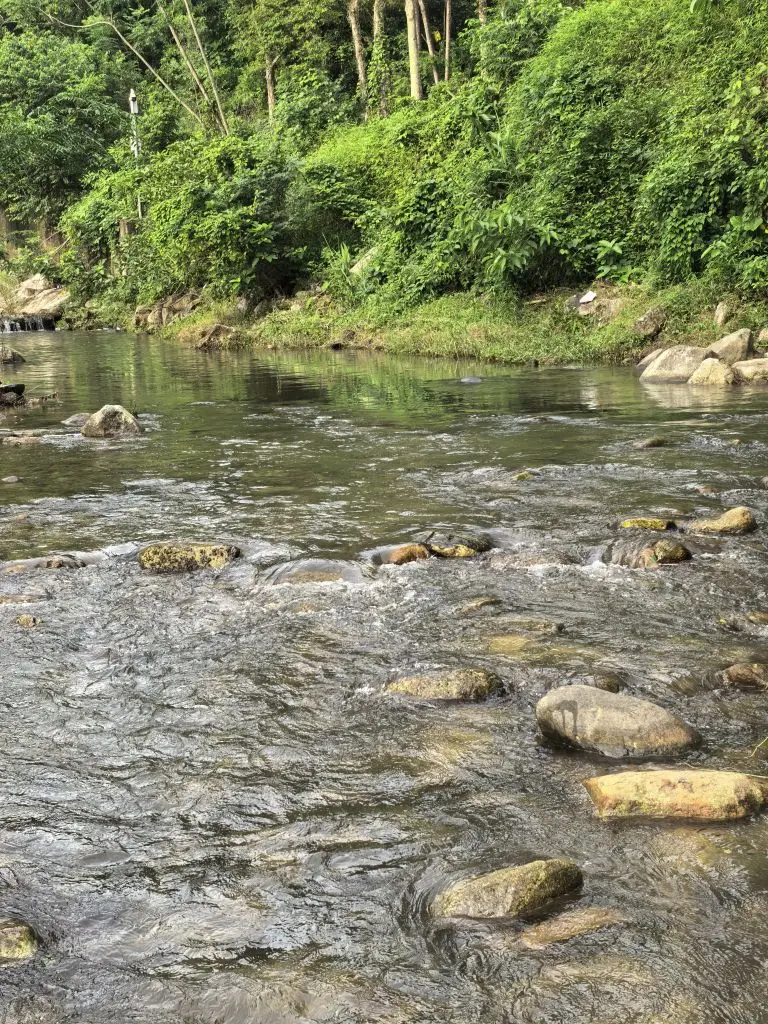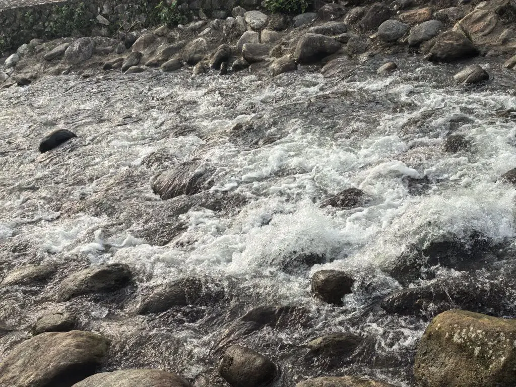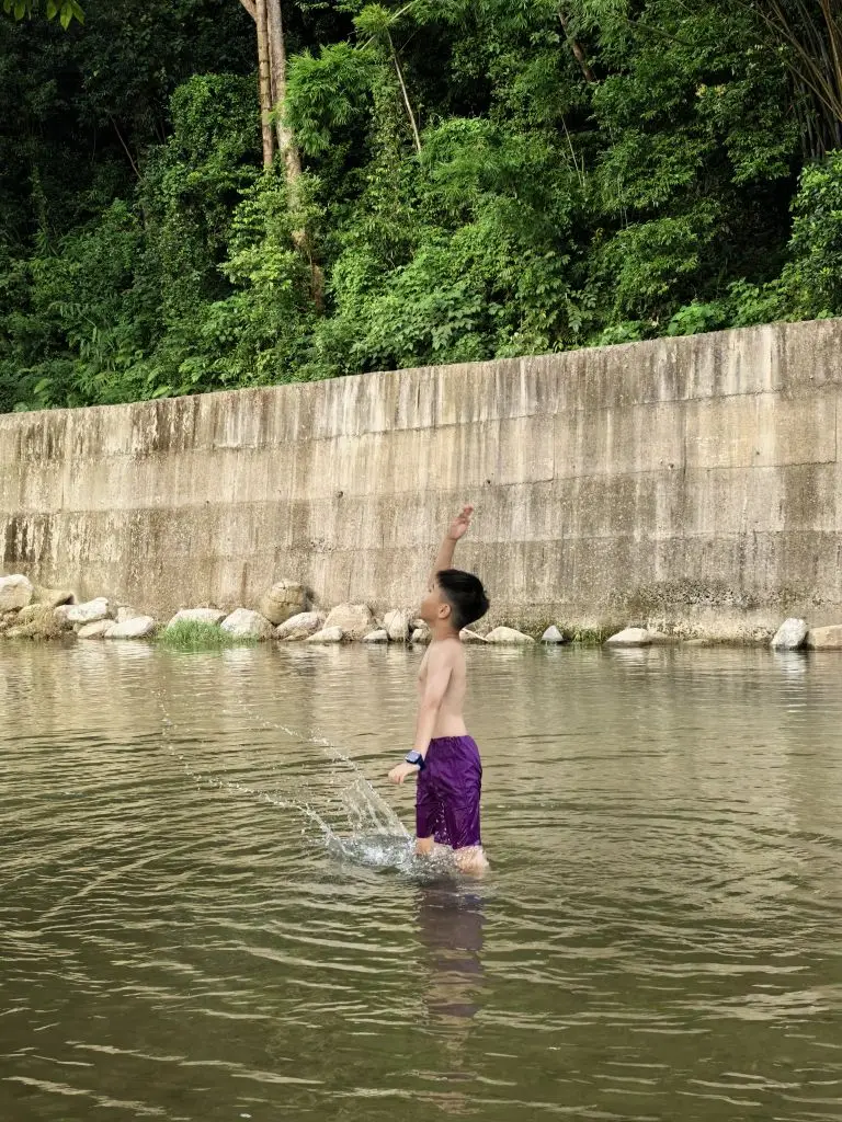 终于到了雨林村,把车停在村口的树荫下,一眼就看到了穿村而过的溪流。溪水是透亮的浅碧色,阳光透过树叶的缝隙洒在水面上,碎成星星点点的光斑。脱了鞋踩进溪水里,凉意瞬间从脚尖漫上来,驱散了秋日午后的微热。水里藏着小小的石螺,还有一群群不怕人的小鱼,伸手去碰,它们便灵活地四散游开,留下一圈圈涟漪。岸边的树木长得茂密,枝叶交错着搭成天然的遮阳棚,坐在石头上听着水流声、蝉鸣声,连呼吸都变得清甜——原来最治愈的风景,从不需要刻意寻找,就藏在这样原生态的村落里。