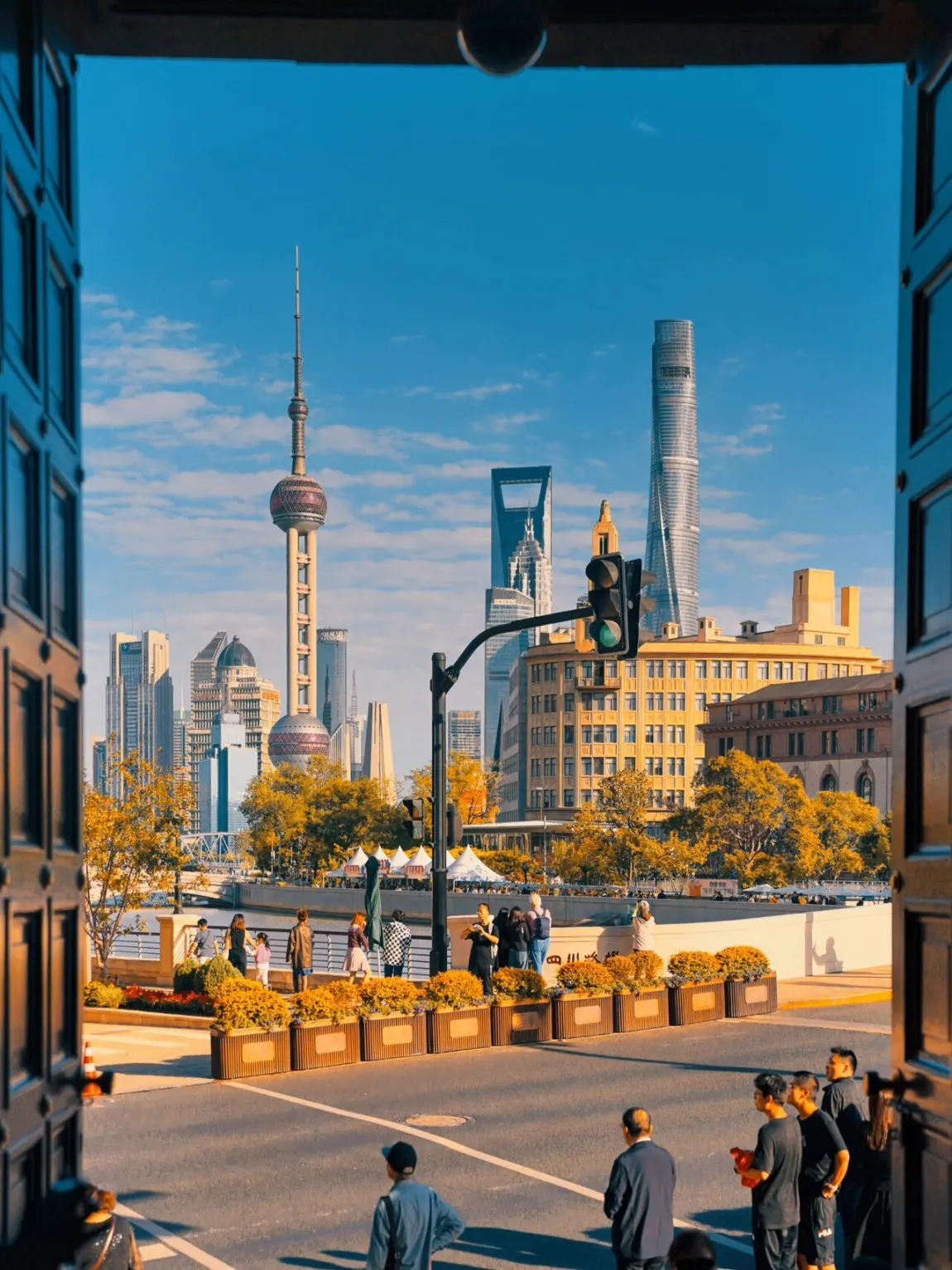 后门才是人流聚集的宝藏👍机位,门框天然成为上海地标打卡的边框🚪。