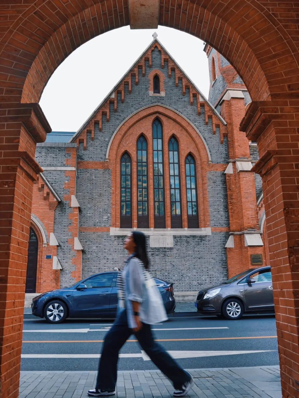 外滩源必打卡的罗马风格教堂💒,马路对面看过来很有异域风情,对面拱门可以拍出欧洲街头漫步🚶♀️画面即视感。
