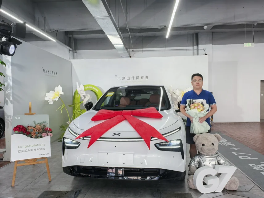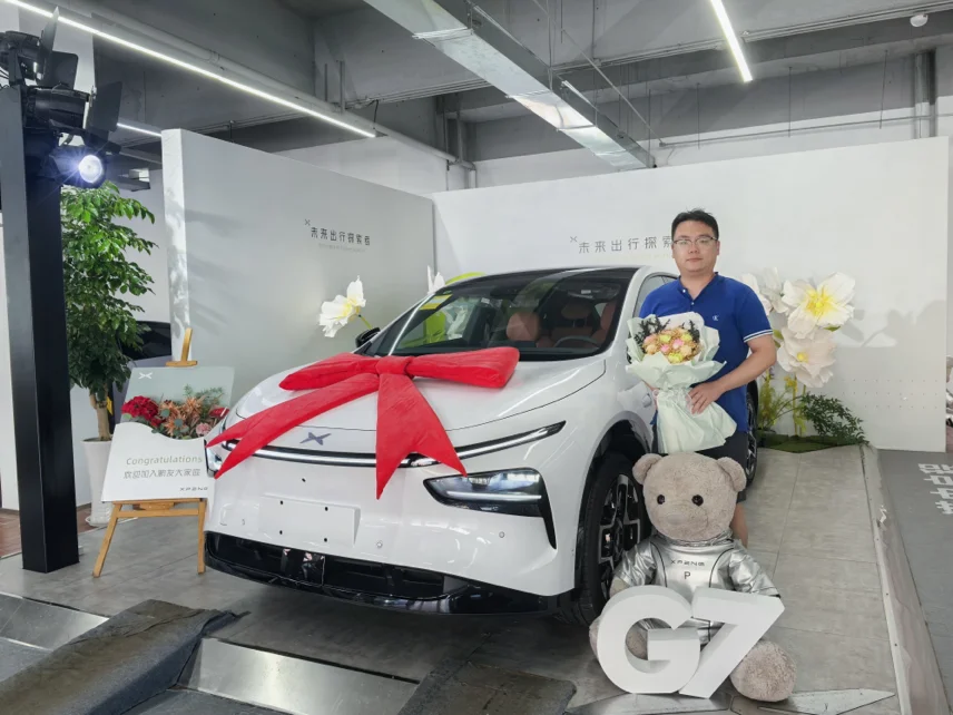 人生中第二辆小鹏汽车,心情非常激动,白色外饰,橙色内饰🥰搭配非常好看,提车流程交付也说得非常清楚,面面俱到。还有个可爱的小熊熊礼物,不要太完美。
