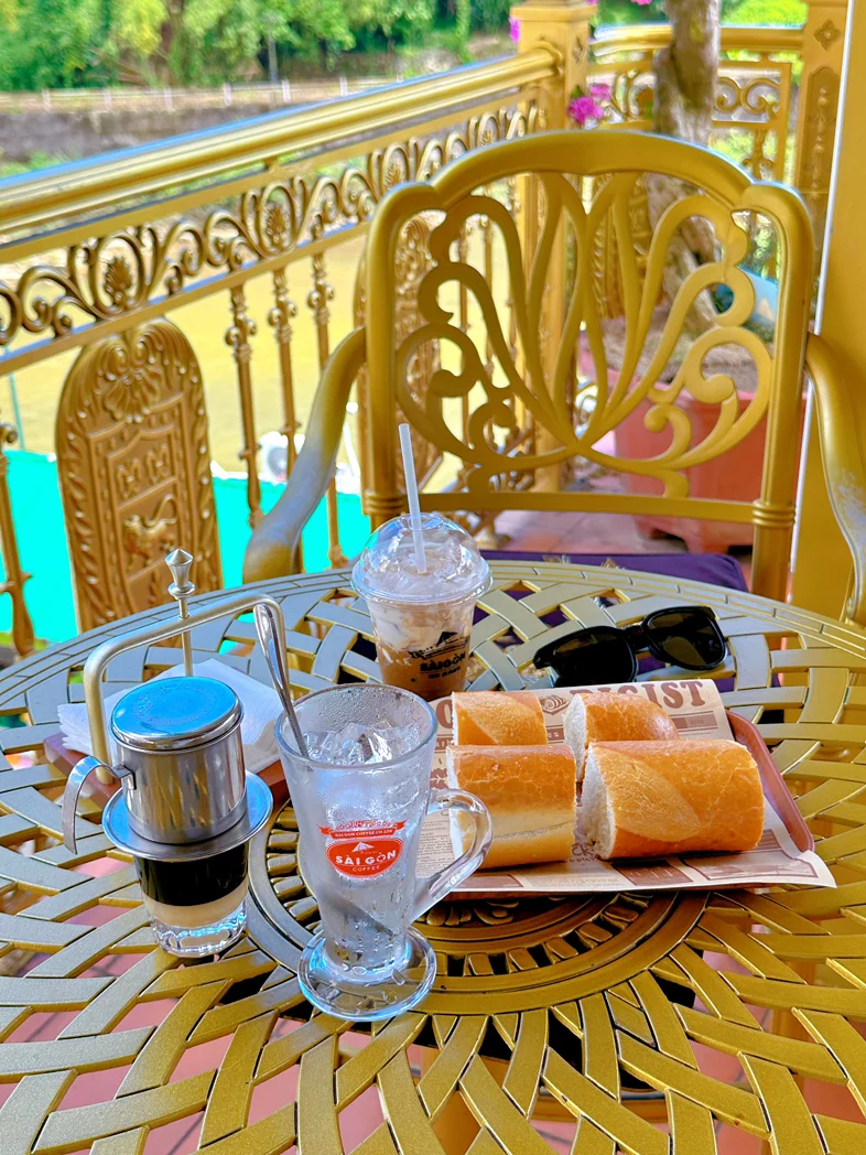 🍜逛完了国门之后就开始逛吃了,这里真的很多越南风味的菜式,我先试到西贡咖啡观景台打卡这里的咖啡,点了一份咖啡坐在这里吹着凉风,看着下方行人来往别有一番风味,而且这里看到一桥上过境的商人和游客走走停停。