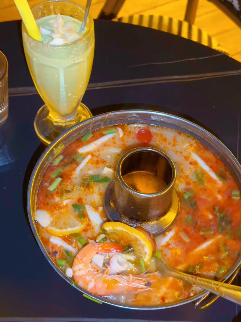 🍹夜晚10:00坐在东南亚餐厅看着北河对面越南街景,听着外国风情的音乐吃着东阴功汤结束了东兴口岸之旅~