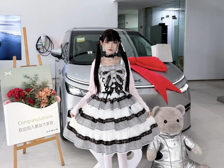 今天穿最喜欢的日牌Lolita裙sbw去提车,小鹏X9当初去店里看的时候就直戳我心,看起来很高档,感觉拥有这款车我就成为了公主,性价比很高,价格非常合理,星舰设计语言太惊艳,星蝶渐进式格栅像碎钻拼缀,贯穿式灯带点亮时比我裙上的烫金还闪耀,溜背车尾摆脱了MPV的笨重感,我定制的银色外观配我的小裙子竟格外和谐,简直妥妥的车模哈哈哈。