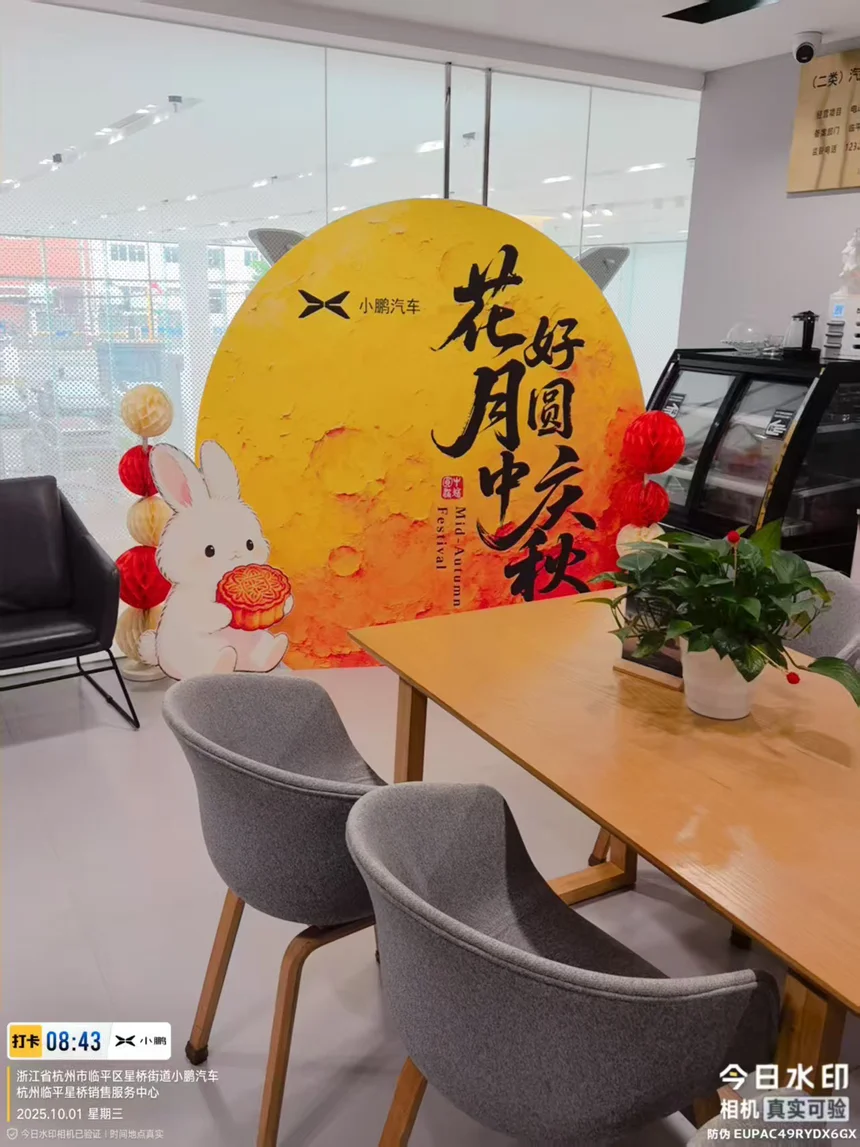 今天来小鹏汽车杭州临平星桥服务中心维修车子,因为提前预约的,到店后接待人员很快给我安排好了,车子检查完了、问题处理好了,因为预约后准时到店的,还有免费的前档油膜清洗,刚好赶上店里的双节活动,不错,给小鹏汽车临平星桥店的售后服务点赞!:#小鹏汽车 #小鹏智能服务 #小鹏MOT服务
