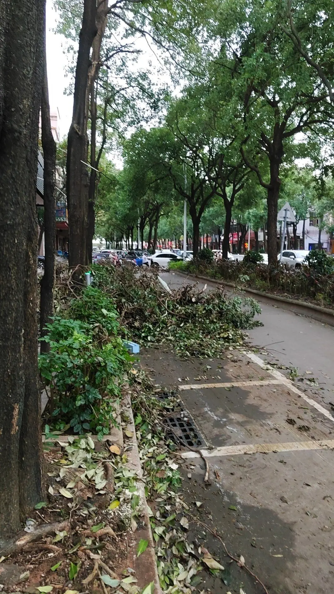 #我的绿色足迹# @鹏友爱公益 @鹏友俱乐部台风过后,城市清理,公益事业,从我做起!台风过后的道路都是树,政府简单清理道路后,我们公司自发性志愿公益行动。非常有意义,为自己的城市出一份绵力,为自己的城市添一点美好 。