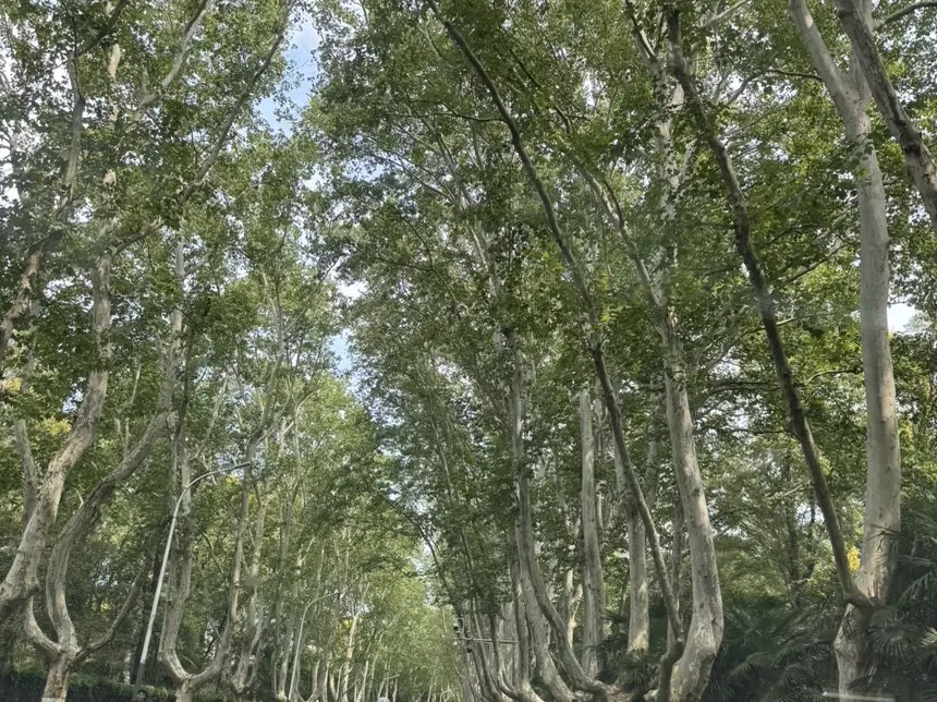 从海底世界出来,我们漫步在南京著名的梧桐大道上。金秋的阳光透过高大的梧桐叶洒下斑驳的光影,地上铺满了梧桐叶,踩上去沙沙响。娃兴奋地捡叶子当小扇子,一路蹦蹦跳跳,连空气都带着桂花香,轻松又惬意!