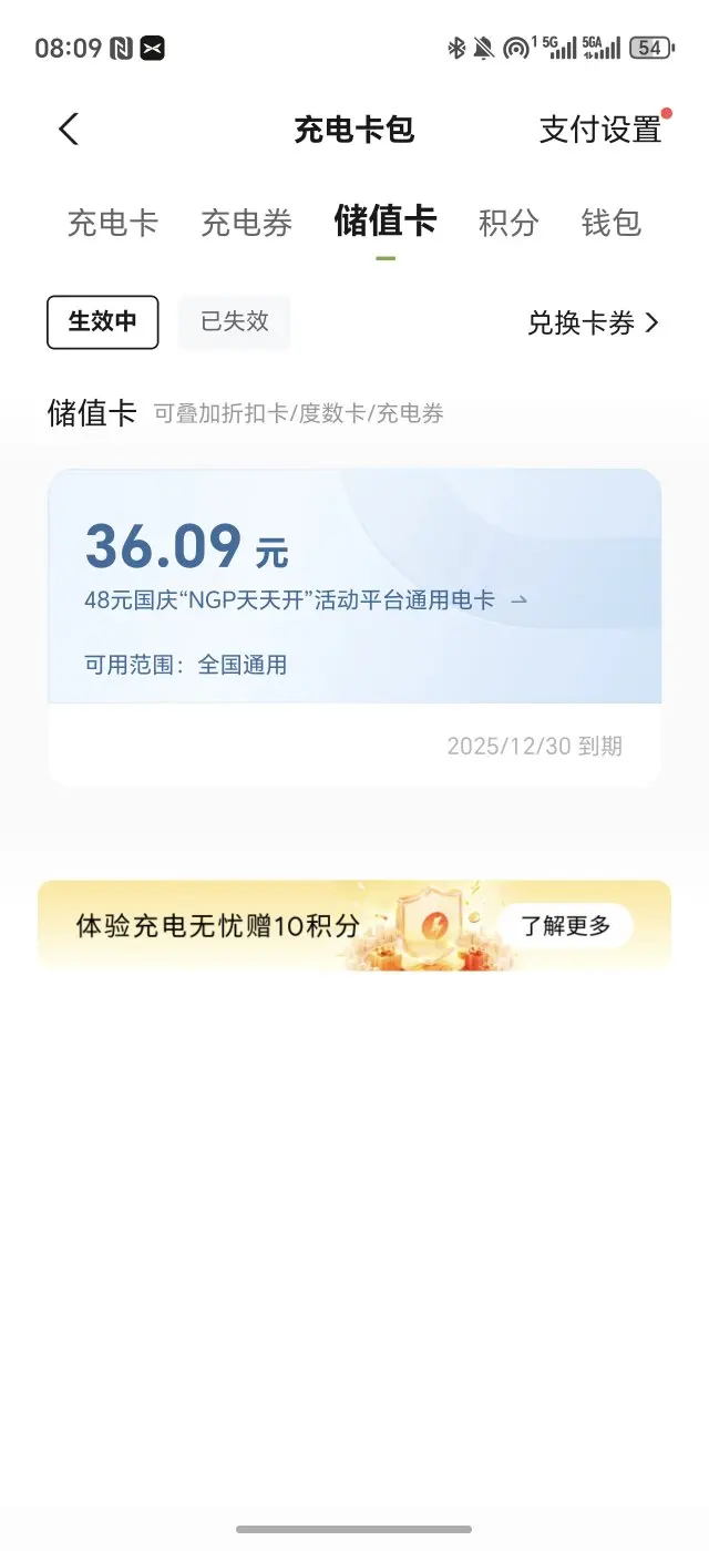 节前我参与了“NGP天天开”活动,通过开5天NGP,轻松领取了一张48元平台通用电卡,另外还赠送了4元无门槛服务费优惠券。这套组合优惠非常实用,不仅能在小鹏自营站使用,还支持全国几千座高速公路及附近的指定第三方充电站,覆盖范围广,彻底解决了我的里程焦虑,可以抵扣充电费用、服务费、占位费和充电无忧费用。
