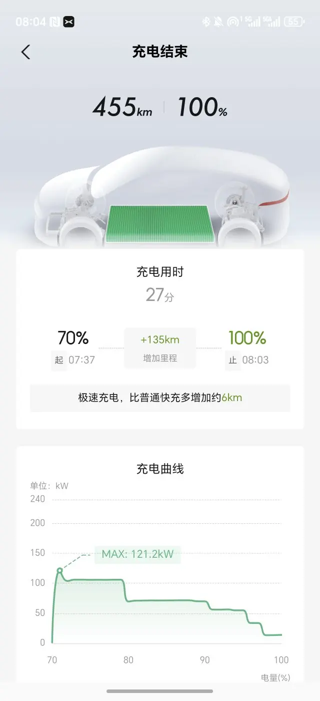 充电体验更是超出预期。我选择了一个小鹏自营超充站,APP能实时查看充电桩使用状态,地锁一键降下,充电枪轻巧得单手就能操作,一按充电枪按钮,就能自动打开充电口盖,插上枪瞬间自动识别并开始充电,实现“即插即充”。