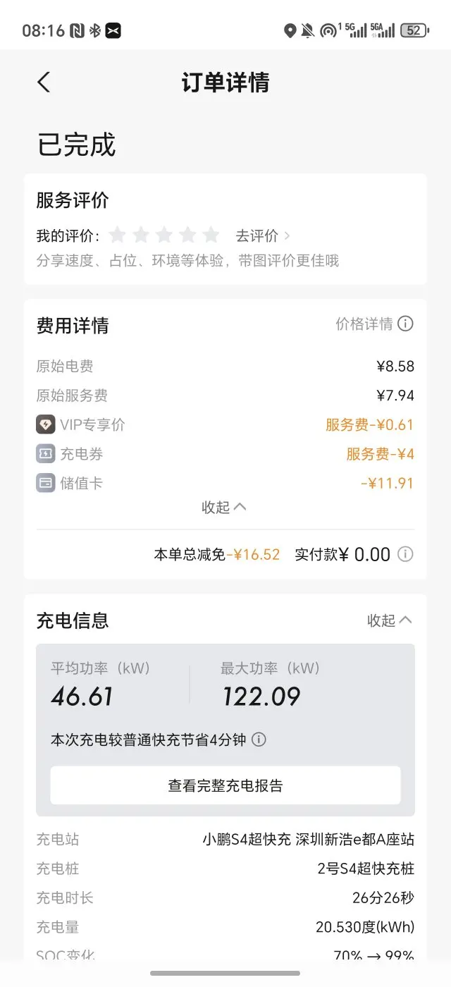 更惊喜的是,充电费用全由电卡和优惠券自动抵扣,结算时系统智能优先使用优惠券,无需手动操作。这个假期,小鹏用实实在在的福利让我的电动出行变得更加经济、无忧。