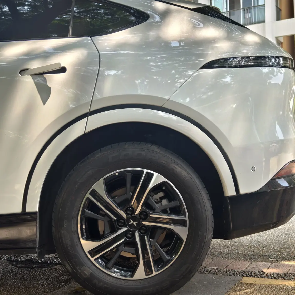 为了高行驶经济性和舒适性,我的老6选择的是18寸的低风阻轮毂。但是我觉得这个18寸全封闭的轮毂真的是不太好看,于是乎我实在忍不住,翻遍全网,18寸轮毂鲜有改装方案参考,多数为换p7轮毂,但是ET值相差过大,个人觉得并不是特别好的方案会破坏原装底盘数据和最大称重质量。思来想去老六的轮毂不好看的地方源于一大片大塑料显得过于饱满呆板。