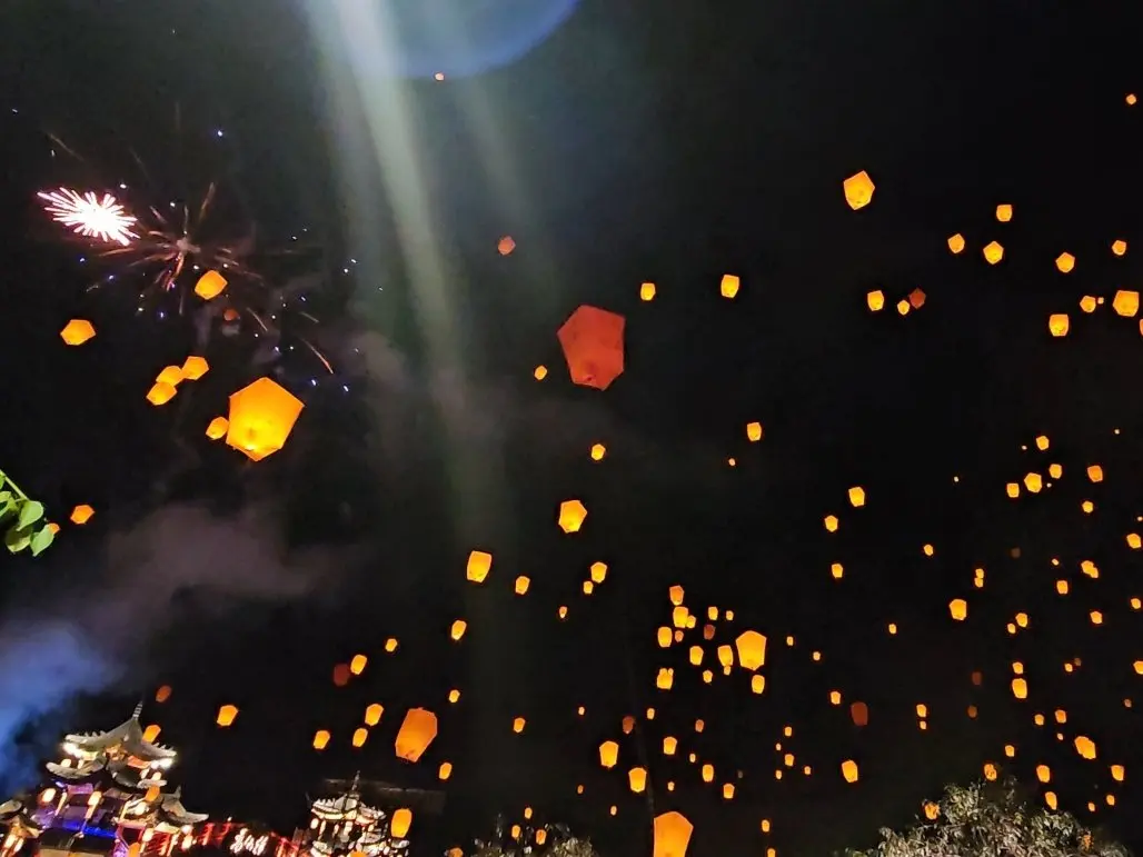 山月刚爬上古屋檐,舞台灯光就裹着歌声漫过来了。在仙气飘飘的古村里听live,连晚风都在跟着和声,中途感受到千人齐放孔明灯已及烟花秀,实属壮观至极~