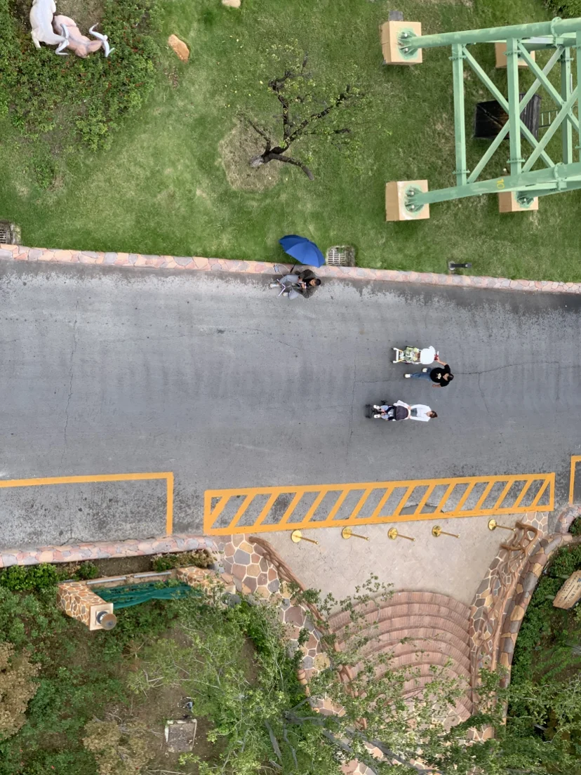 雨下的有些大了,便去做缆车,也正好休息休息。高处的视野很开阔,远处可以看到酒店,向下望去,是点点游客和动物,还能看到卖力直播的主播,回答观众问题的声音听得很清楚。小风吹一吹,雨丝划过脸庞,很惬意。