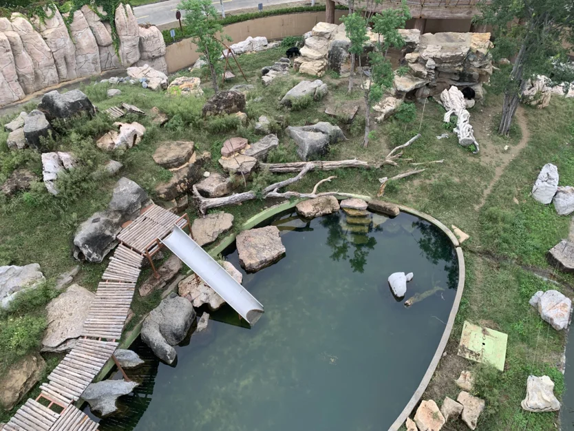 最有趣的还是投喂白狮子,购买的投喂料份量很足,满满的一盘,比起之前在北京大兴的野生动物园购买的肉类投喂料,性价比超级高。投喂位置分为上下两层,下边的投喂口适合宝宝,上边的投喂口需要狮子站起来才能吃到。宝宝胆子也大,使用了一会下边的投喂口,吵着要试试上边,我只能单手抱着她,还要帮她拿着铁钎子。虽然很累,倒也值得,宝宝玩的很开心,狮子也跳起来,吃到了上边投喂口的食物。工作人员说,还是人少的原因,狮子还没吃饱,而且就我们一家在投喂,狮子的注意力比较集中。