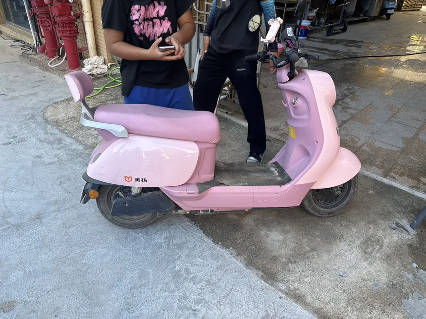 这是我们租的粉色小电瓶车,别看他粉但是在小路走位真的很快!而且只要50块钱个人感觉还是非常划算的!毕竟用车时间是10点到22点一共12个小时!