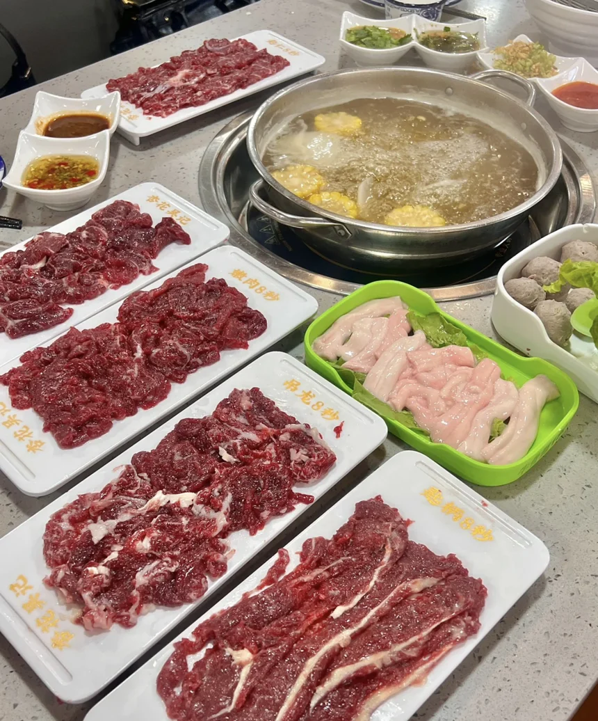 然后我们来到了汕头来吃牛肉火锅啦😃直接来到推荐的杏花吴记肉牛火锅🍲直接开吃这一天就是为了这一口牛肉火锅啊😍想了我一天了嘿嘿😜大口吃肉的感觉真的太好啦🥳